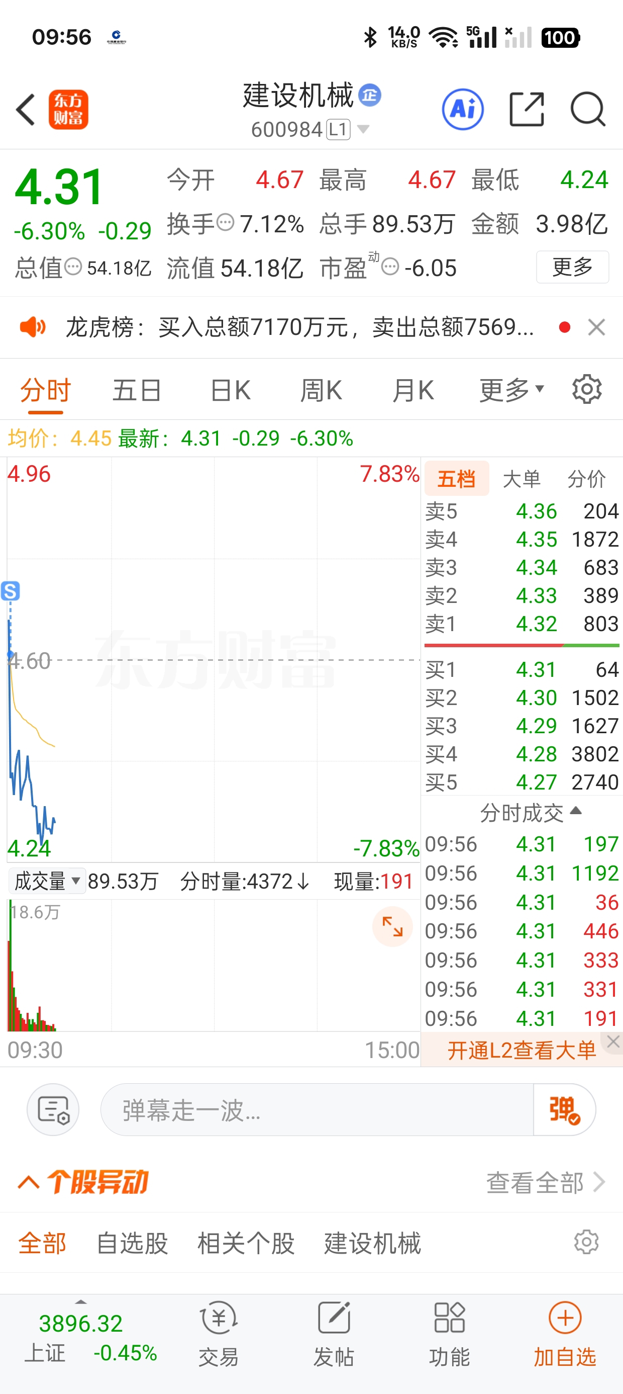 $建设机械(SH600984)$ 看到量化砸,我也砸,谁怕谁