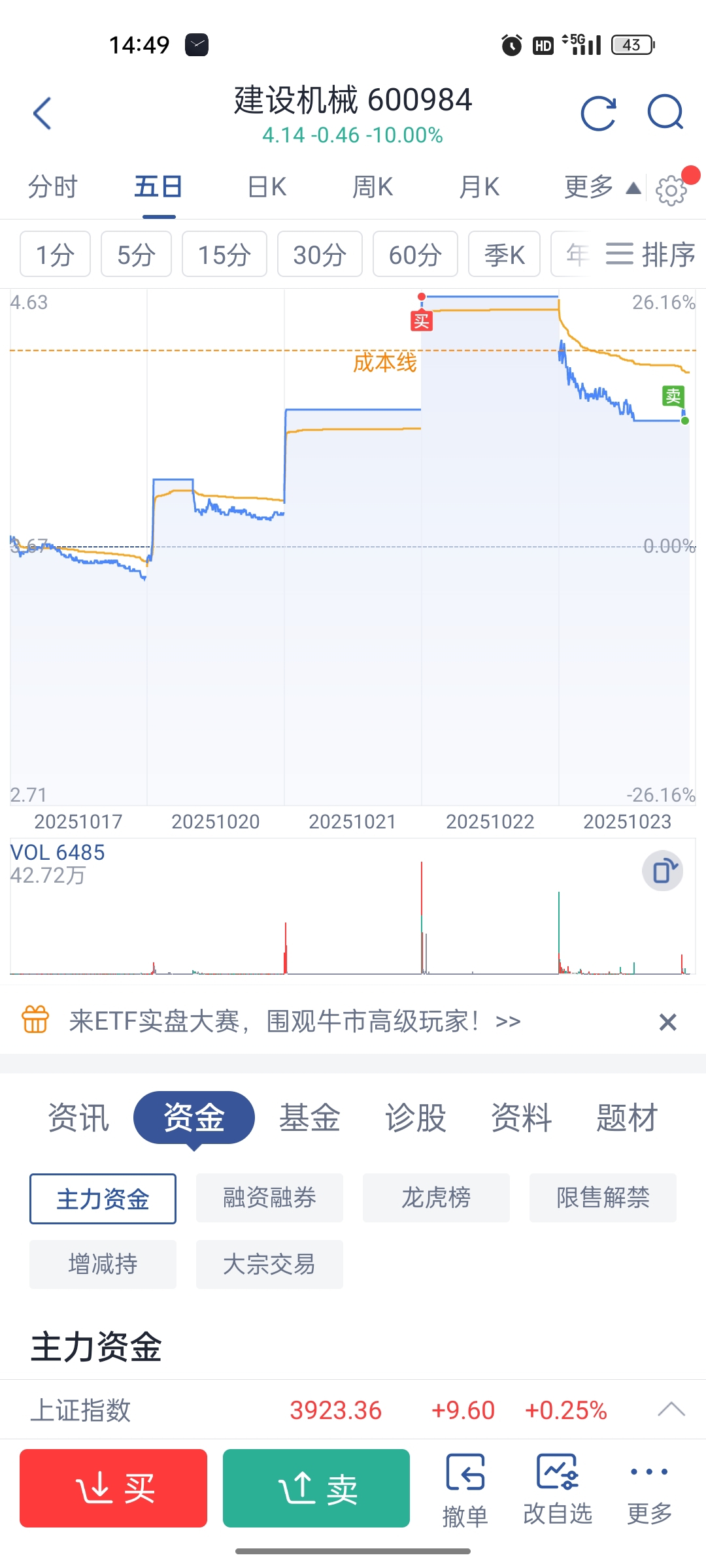 $建设机械(SH600984)$ 开盘不强就该卖 退一步成本线就该卖 呆呆的幻想 格局到二次封板才割