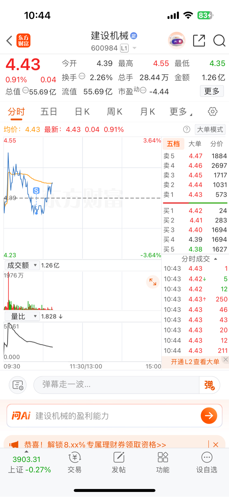 $建设机械(SH600984)$ 好恨啊,亏了17000