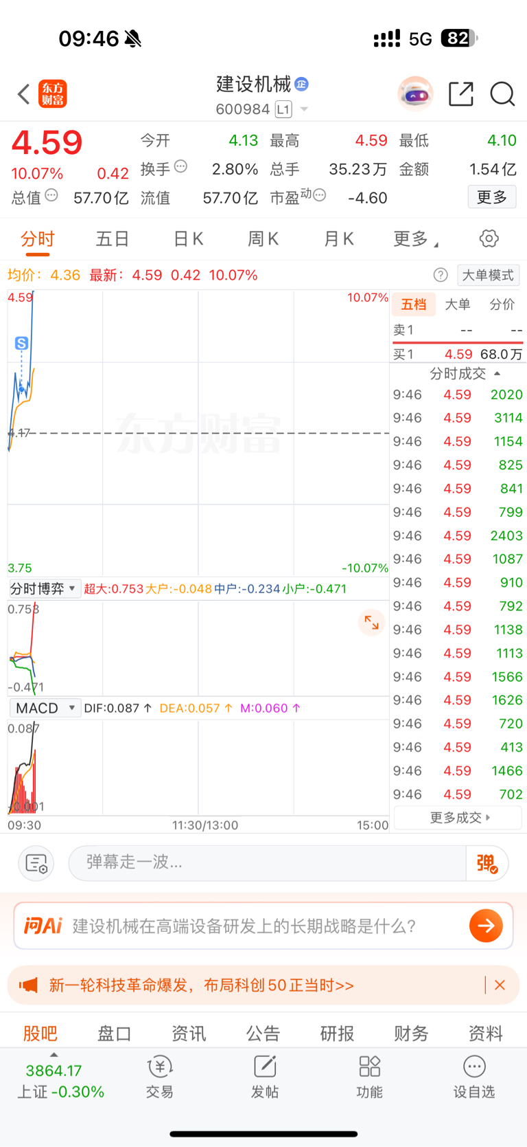 $建设机械(SH600984)$ 拿了好几天,卖在黎明前,好好好,够意思