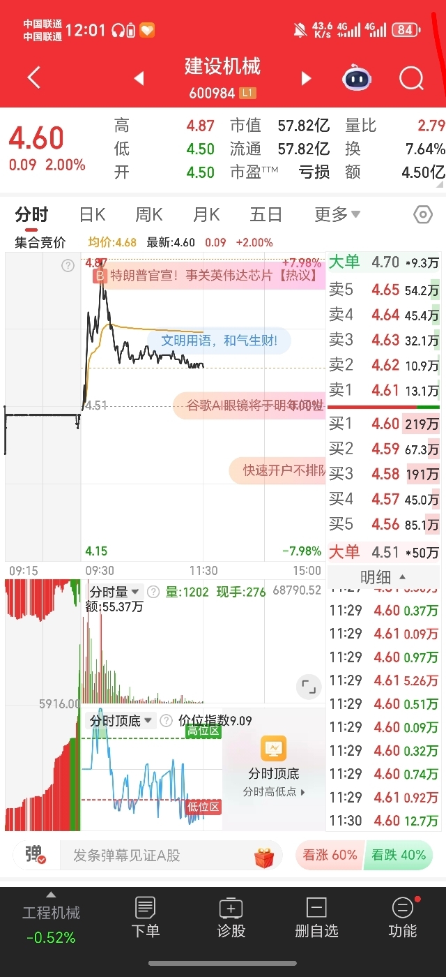 $建设机械(SH600984)$ 阻力太大,拉不上去,明天早盘我割肉了,今天站山顶了