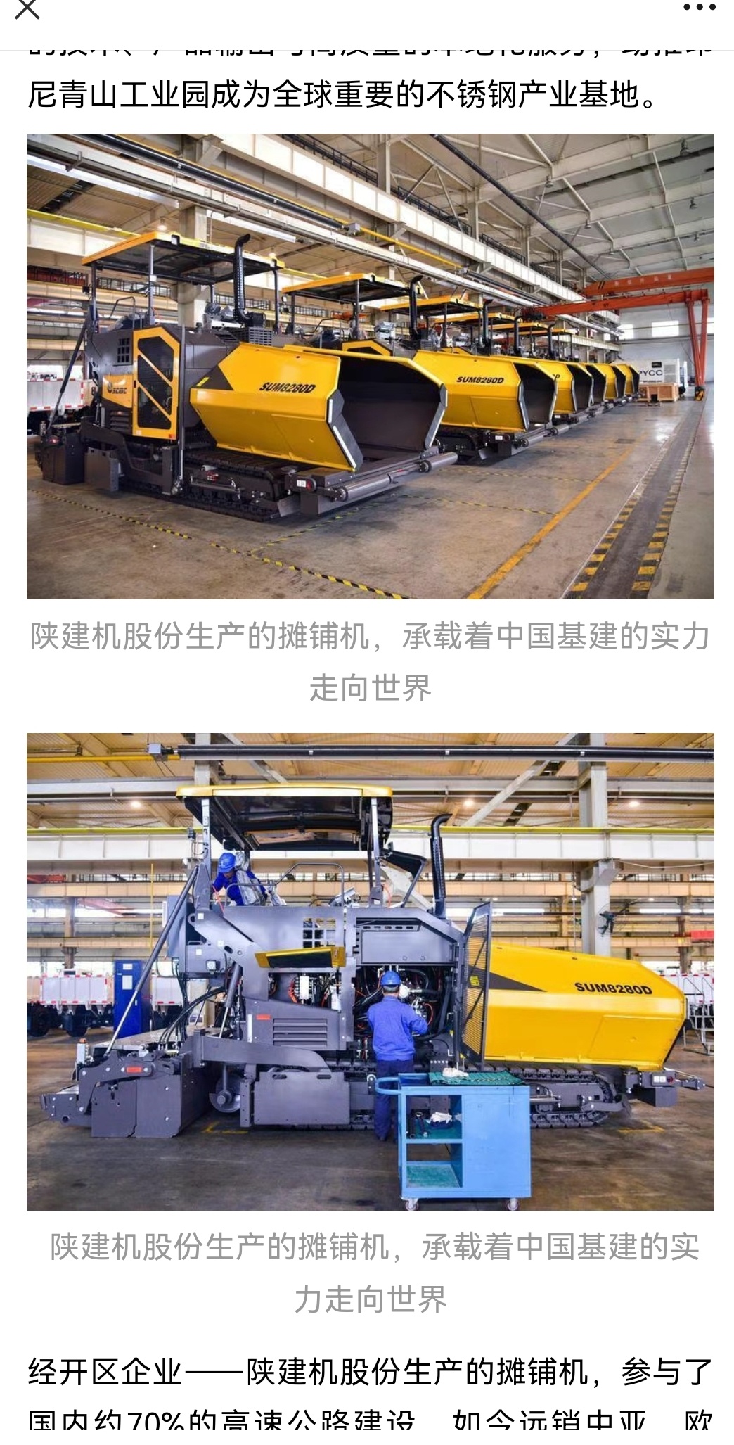 子语发声:向下空间非常有限,向上空间还未打开,陕建机股份生产的摊铺机,承载着中国基建的实力走向世界,今远销中亚、欧洲、非洲等地