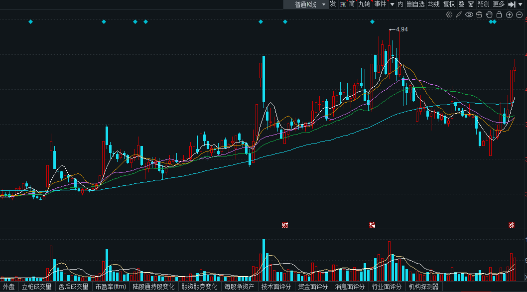 明后两天不创新高过5元,就大概率要走成头肩顶的形态了。