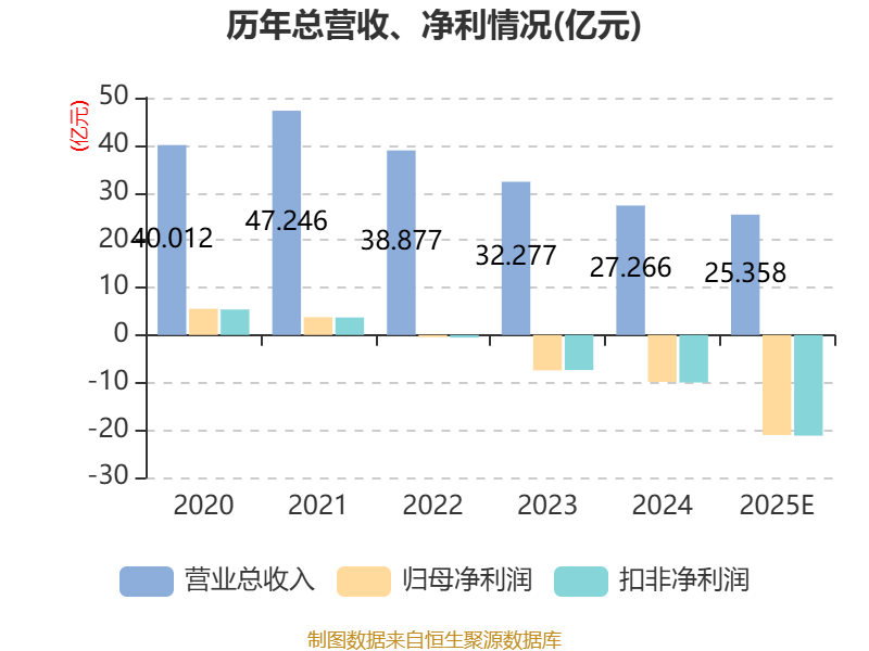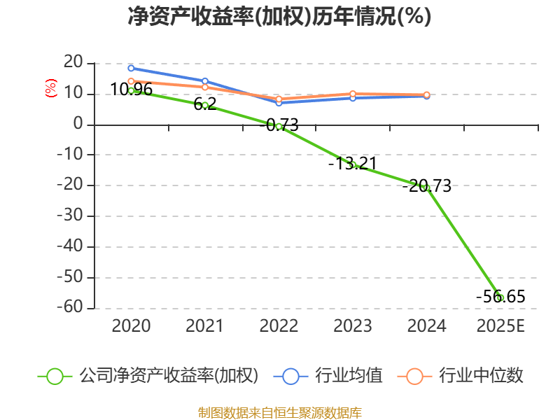 数据显示,2025年公司加权平均净资产收益率为-56.65%,较上年同期下降35.92个百分点。