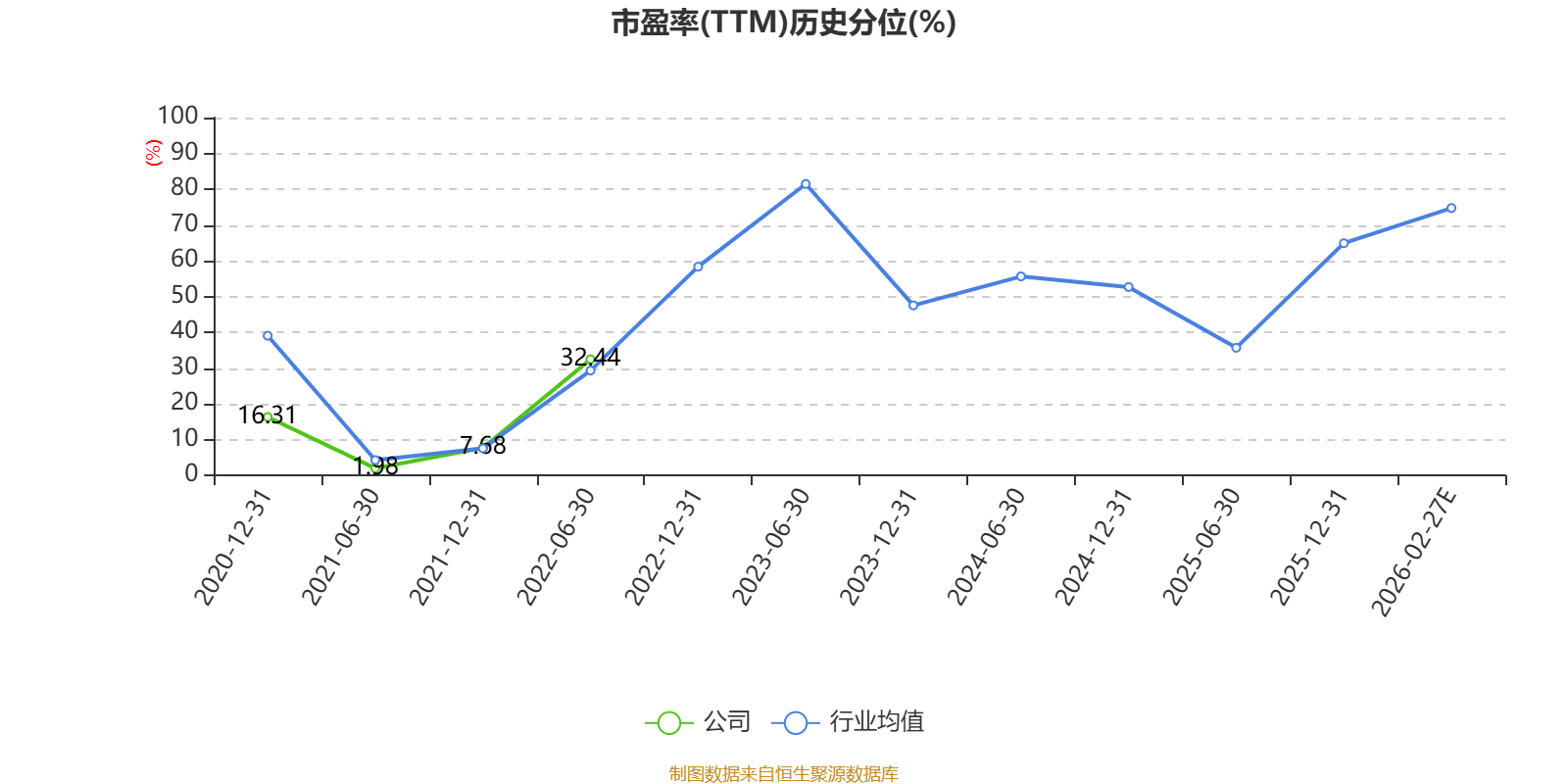 市盈率、市净率为负时,不显示当期分位数,会导致折线图中断。