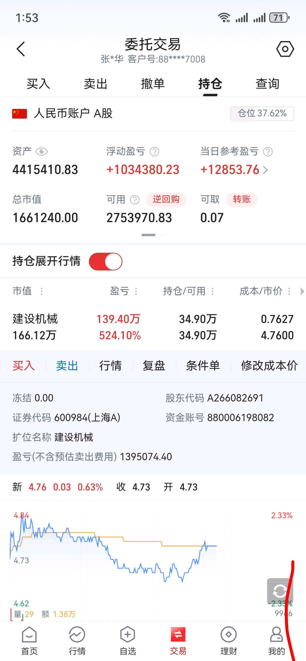 $建设机械(SH600984)$  我走啦,留下的兄弟发财,没耐心了