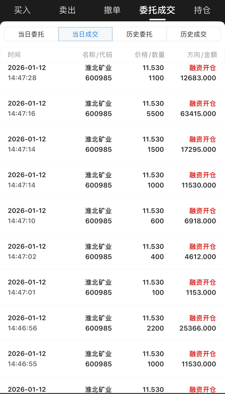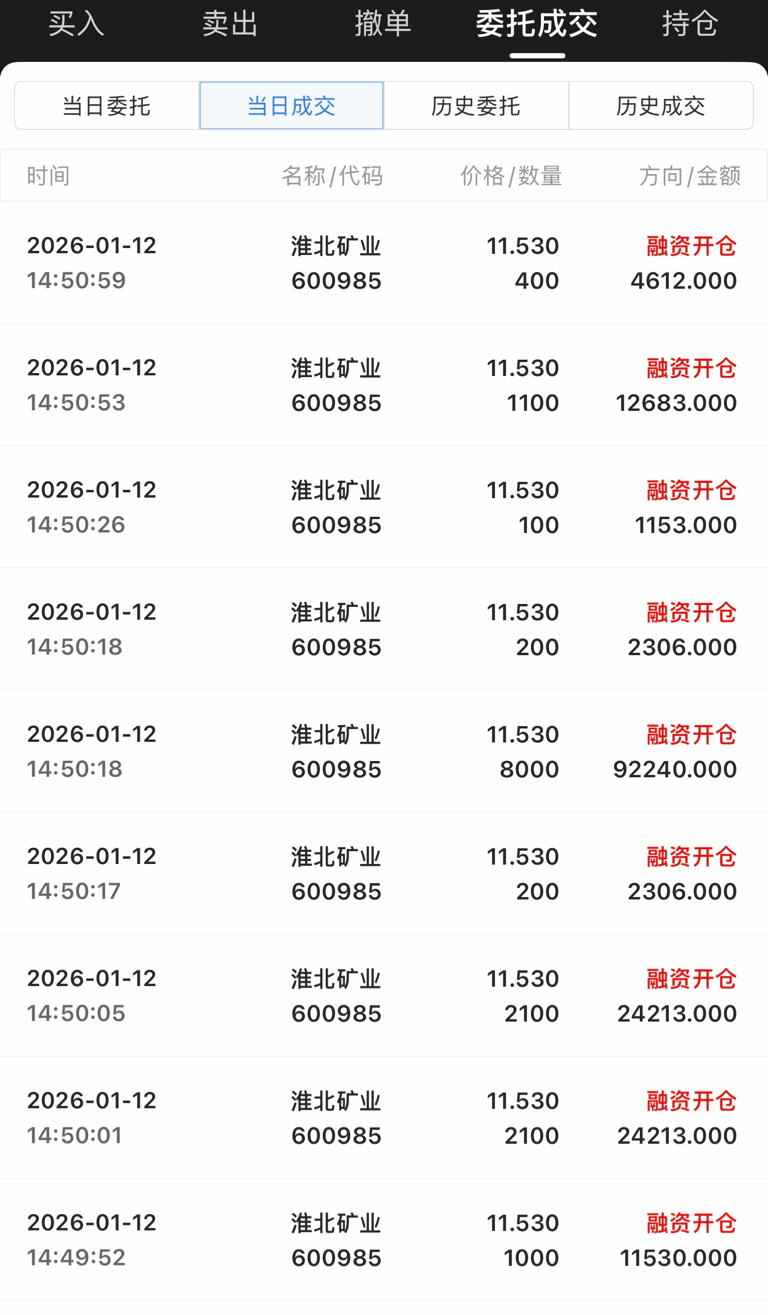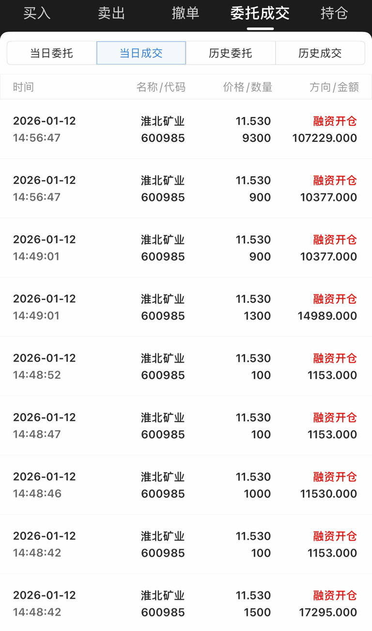 今日入局淮北矿业,融了500个w,心不贪,挣几毛钱就行,希望这周能在淮北这里喝口