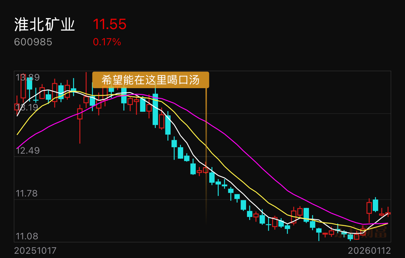 $淮北矿业(SH600985)$ 今日入局淮北矿业,融了500个w,心不贪,挣几毛钱就行,希望这周能在淮北这里喝口汤,求主力成全