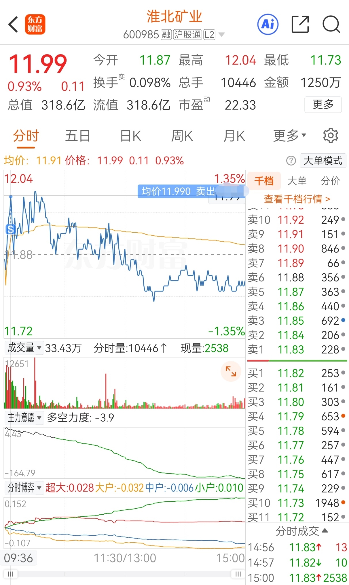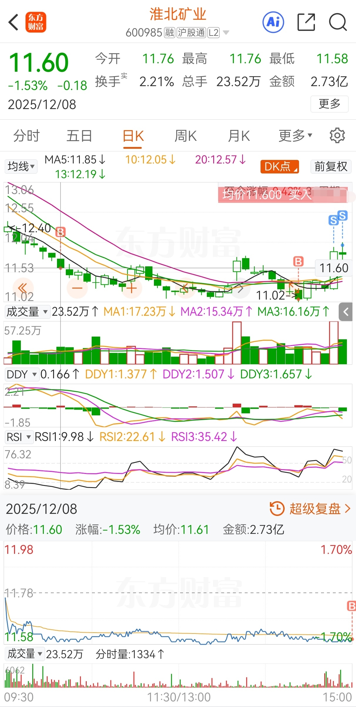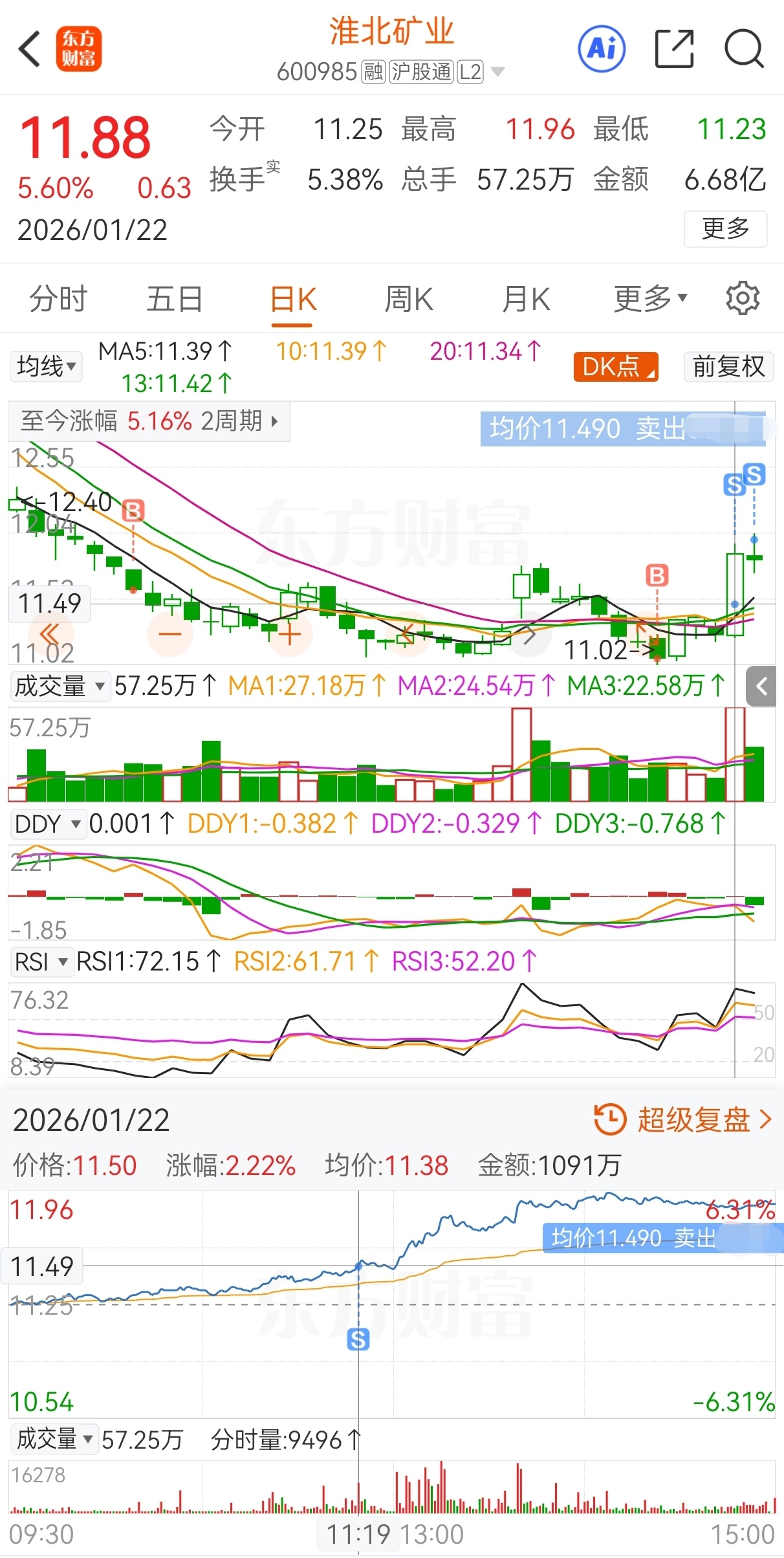$淮北矿业(SH600985)$ 原计划今买明卖,实际11.6买,11.07加仓,11.49减仓,11.99卖,实盘短线套利淮北矿业,成功收米走人!