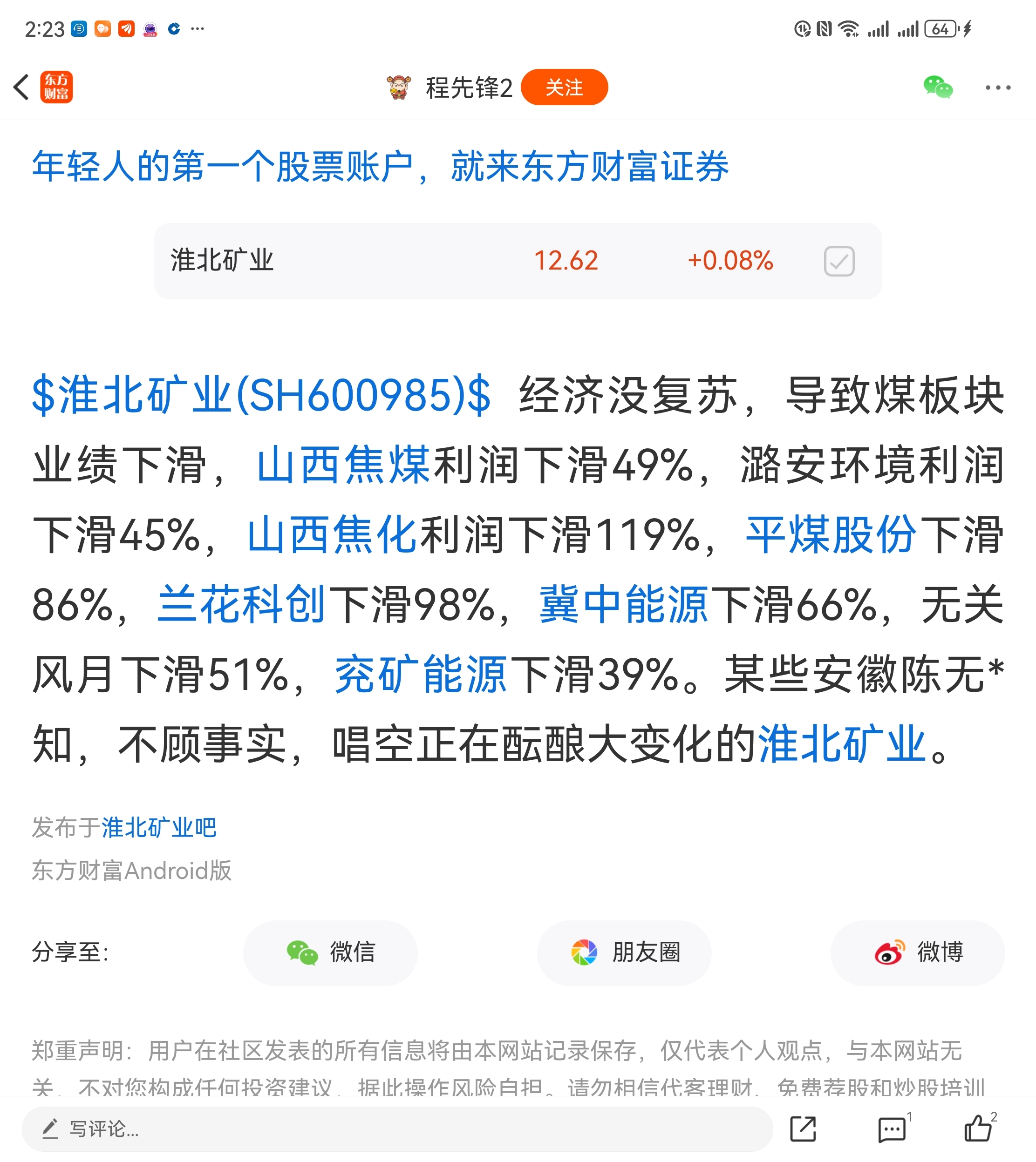 “程先锋2”将煤炭板块业绩下滑归咎于“经济未复苏”,却刻意回避淮北矿业自身“量价双弱”的核心问题,这是对投资者最直接的误导。