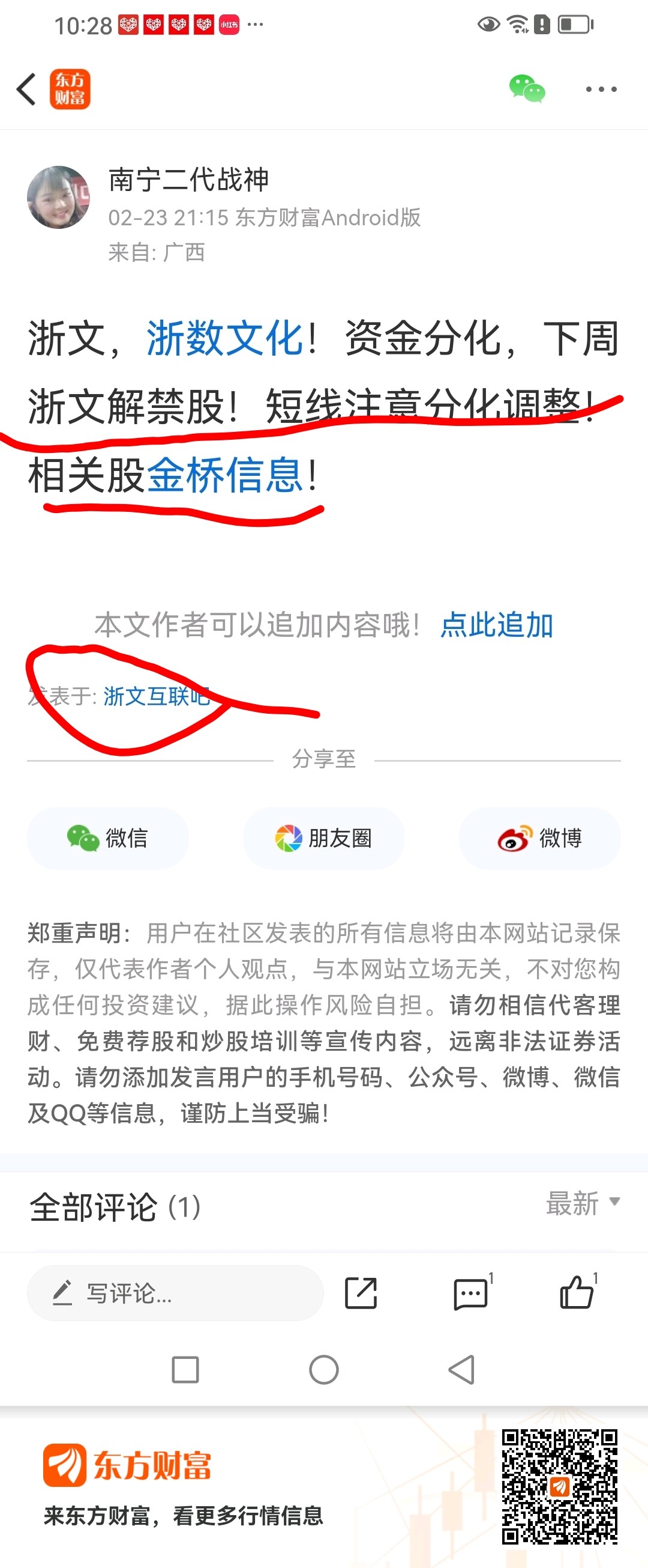 温馨提示: 1.根据《证券法》规定,禁止编造、传播虚假信息或者误导性信息,扰乱证券市场;2.用户在本社区发表的所有资料、言论等仅代表个人观点,与本网站立场无关,不对您构成任何投资建议。用户应基于自己的独立判断,自行决定证券投资并承担相应风险。《东方财富社区管理规定》
