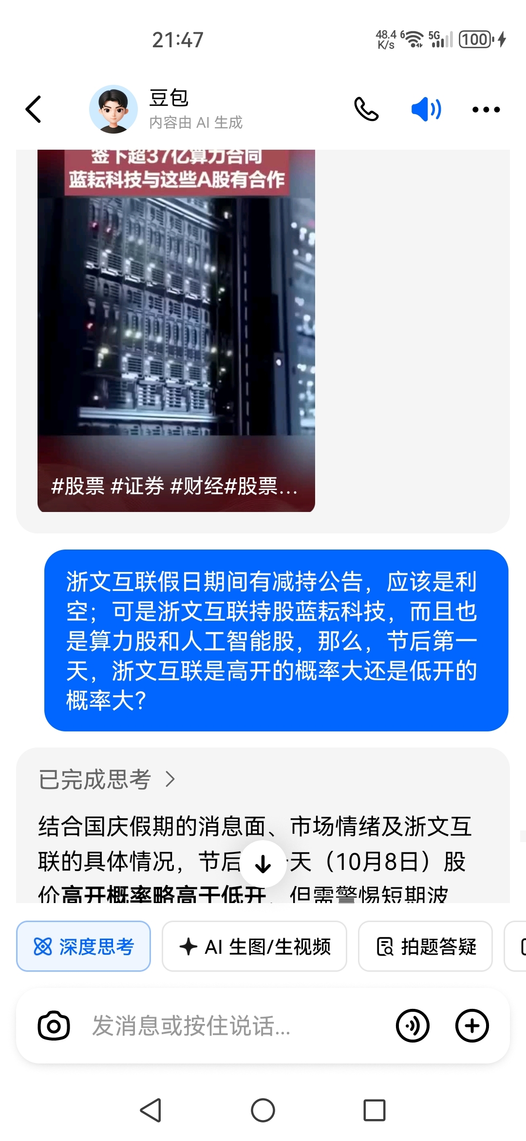 豆包靠谱么?我还说开盘要跑呢豆包说利空有限,且已提现消化,算力和人工智能,特别是