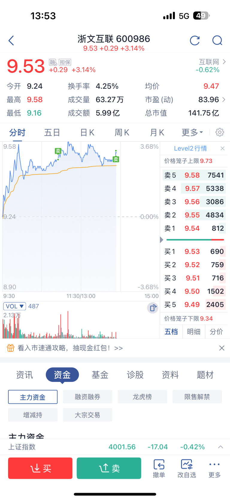 $浙文互联(SH600986)$ 清仓了,留了1手等回调了