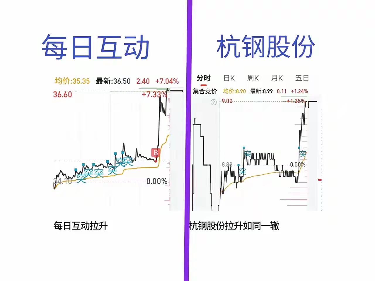 Ds每次有新版本出来,每日互动必异动,昨天尾盘突然异动爆拉7个多点,杭钢股份的拉升跟每日互动如同一辙