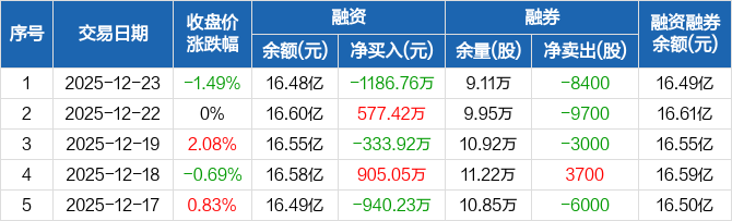 浙文互联:融资净偿还1186.76万元,融资余额16.48亿元(12-23)