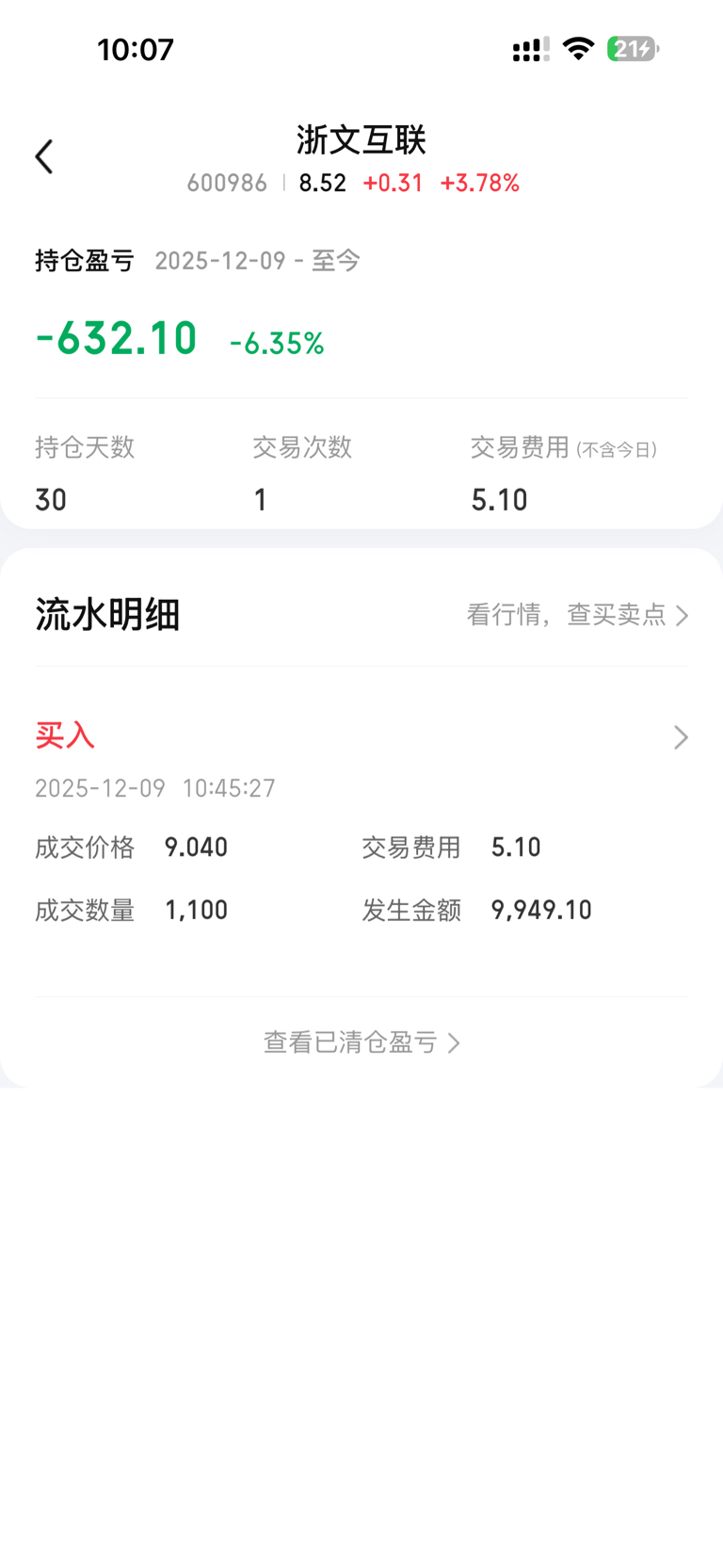 $浙文互联(SH600986)$ 今天差点让我回本