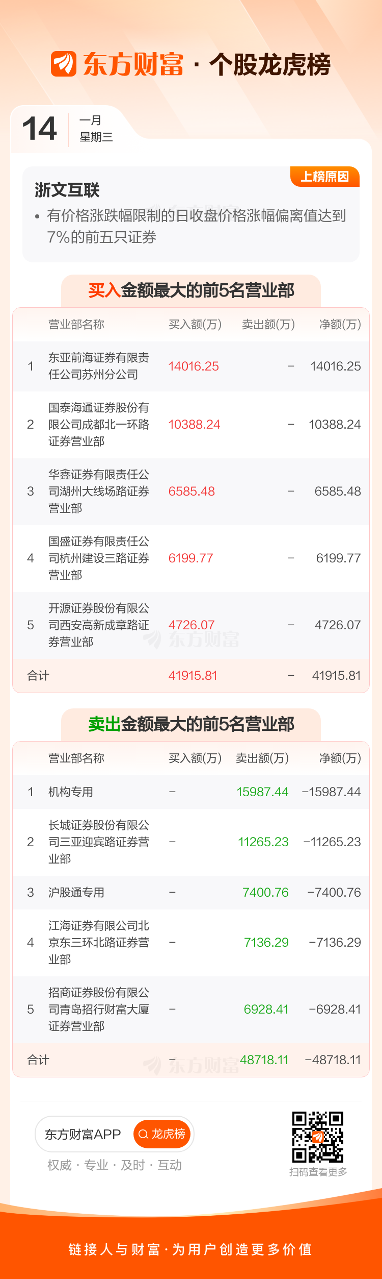 浙文互联(600986)龙虎榜数据(01-14)