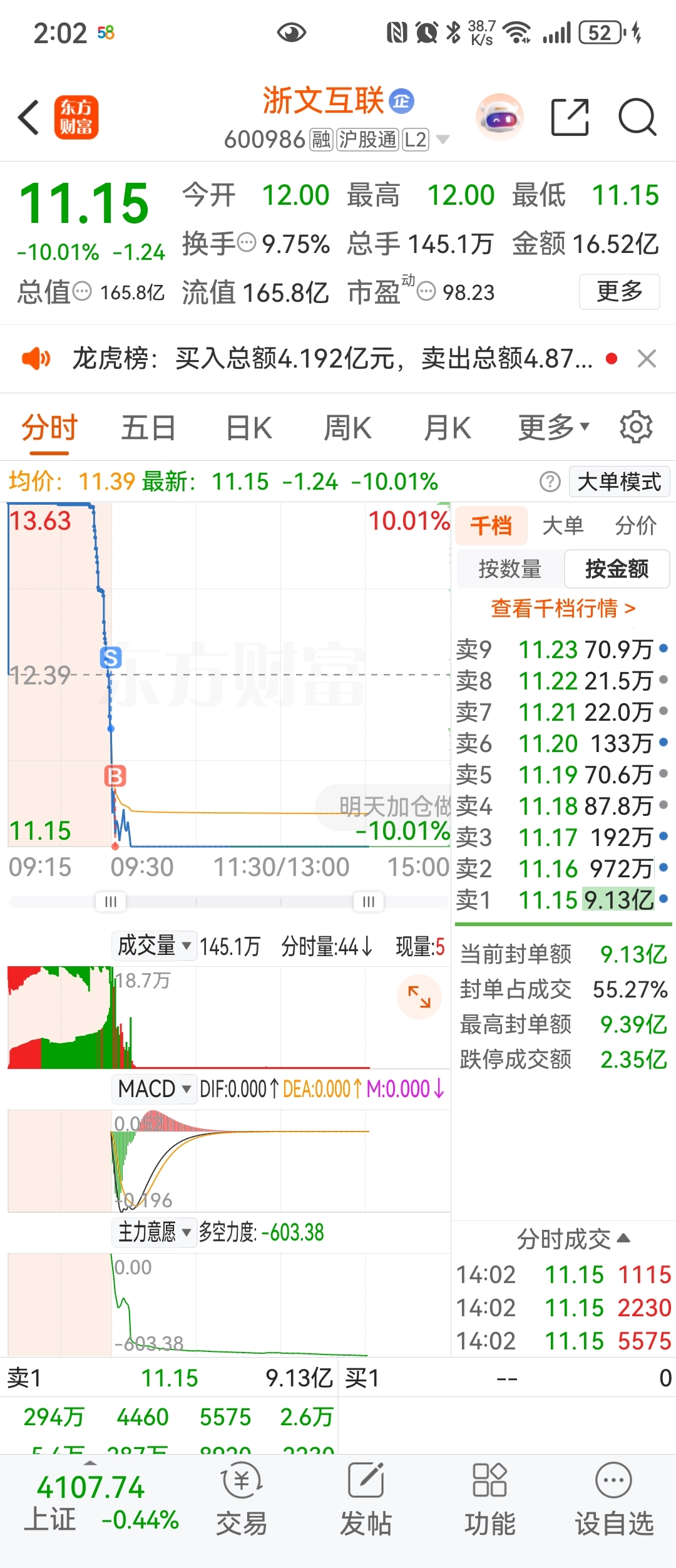 $浙文互联(SH600986)$ 你怎么就死火了 封单超大