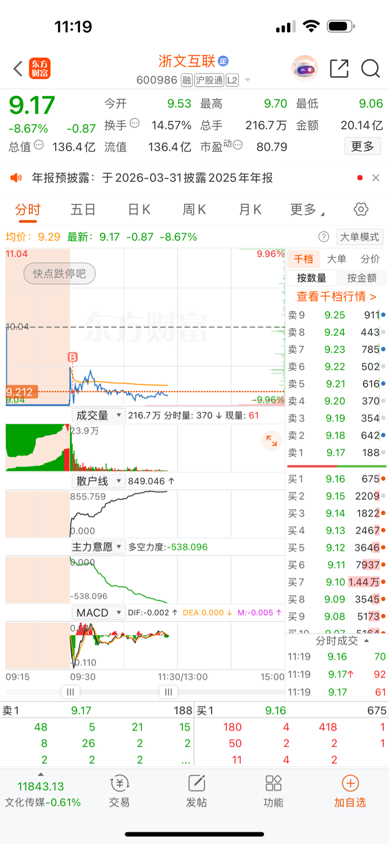 $浙文互联(SH600986)$ 快点跌停吧。一直在对倒