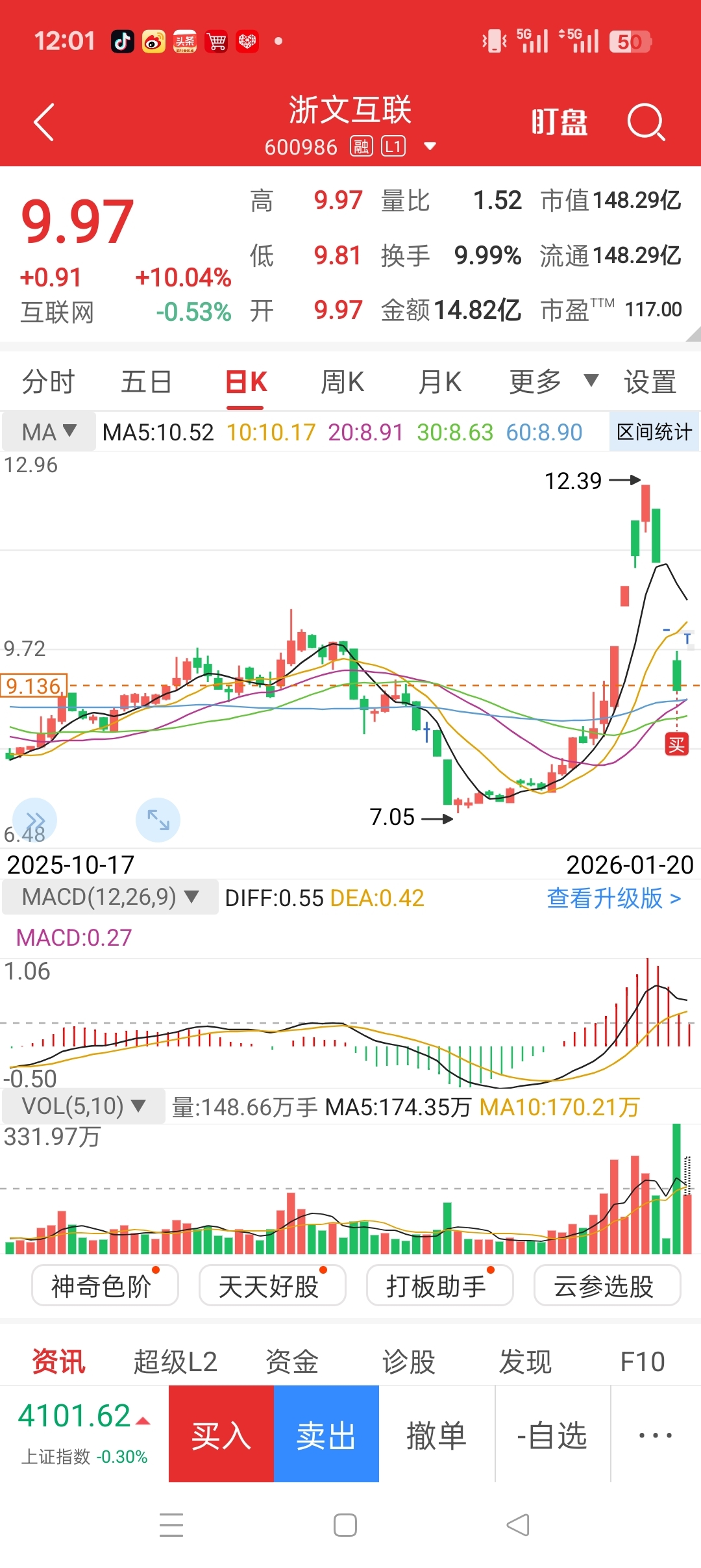 $浙文互联(SH600986)$ 昨天尾盘,我动用我的主力资金抄底重仓买入,今天涨停,就是被我拉起来的