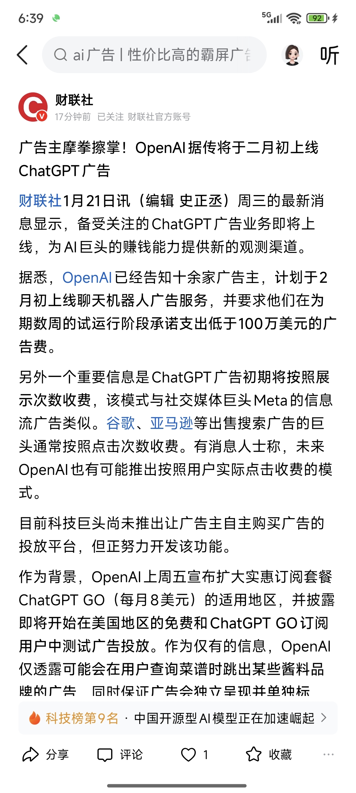 OpenAi的Geo都要正式开干了,就我们这还打压,难怪别人说中国出不了马斯克这