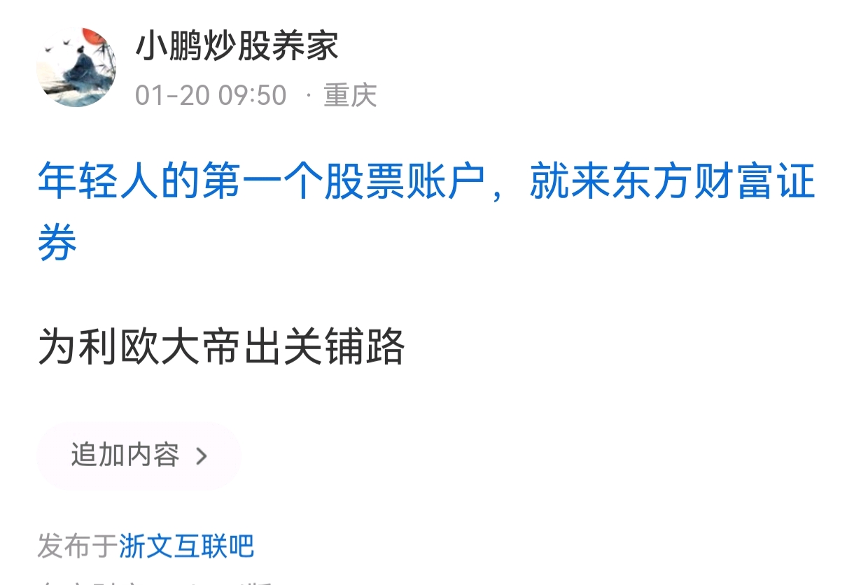 温馨提示: 1.根据《证券法》规定,禁止编造、传播虚假信息或者误导性信息,扰乱证券市场;2.用户在本社区发表的所有资料、言论等仅代表个人观点,与本网站立场无关,不对您构成任何投资建议。用户应基于自己的独立判断,自行决定证券投资并承担相应风险。《东方财富社区管理规定》