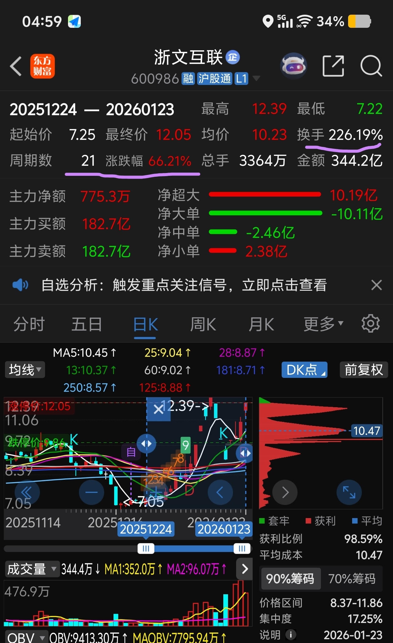 $浙文互联(SH600986)$ 这次遇见严打,跌停回压洗盘吸筹,筹码再一次集中,不但不用担心10天异动,甚至30天异动都完美规避,主力高明