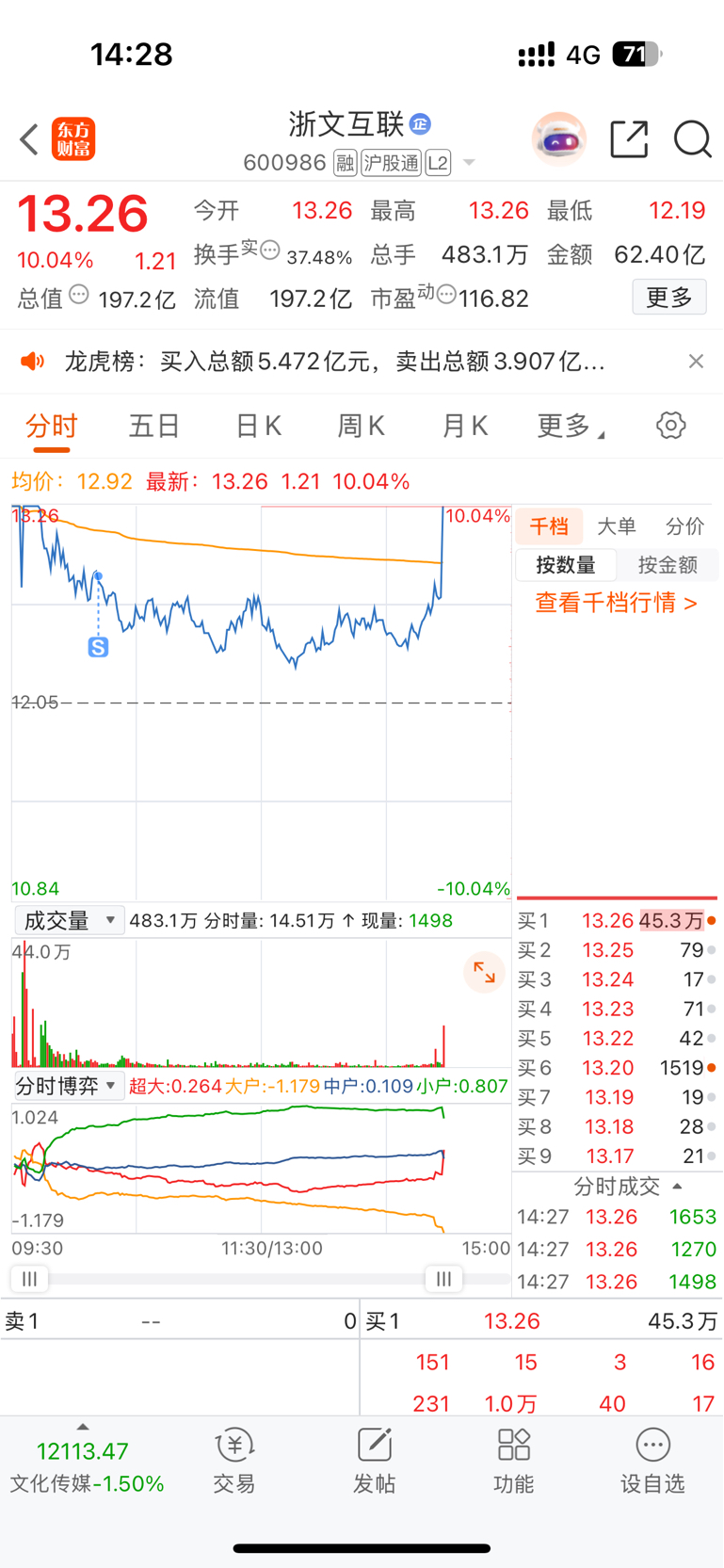 $浙文互联(SH600986)$ 子弹打完了,看着你板