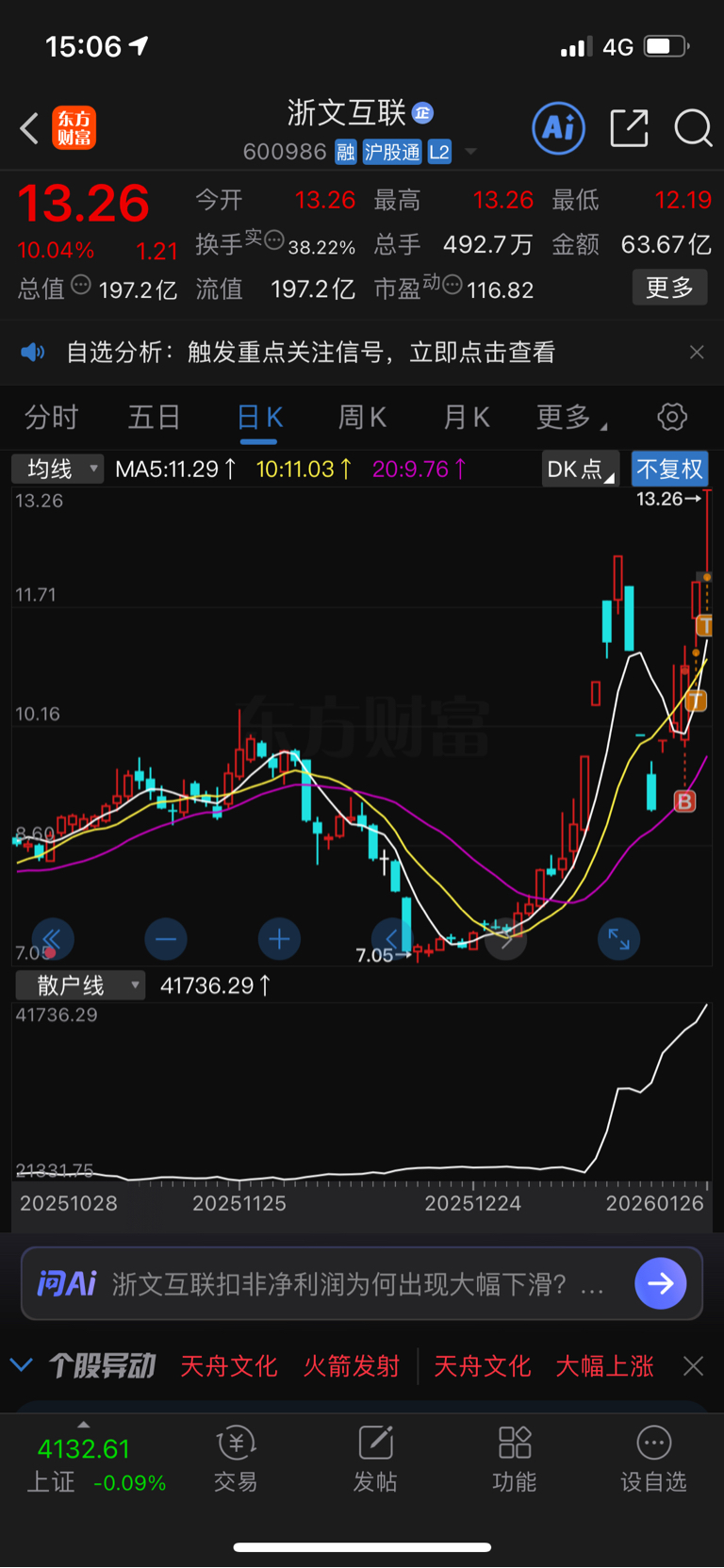 $浙文互联(SH600986)$ 天天做个大t,两天三十个点到手