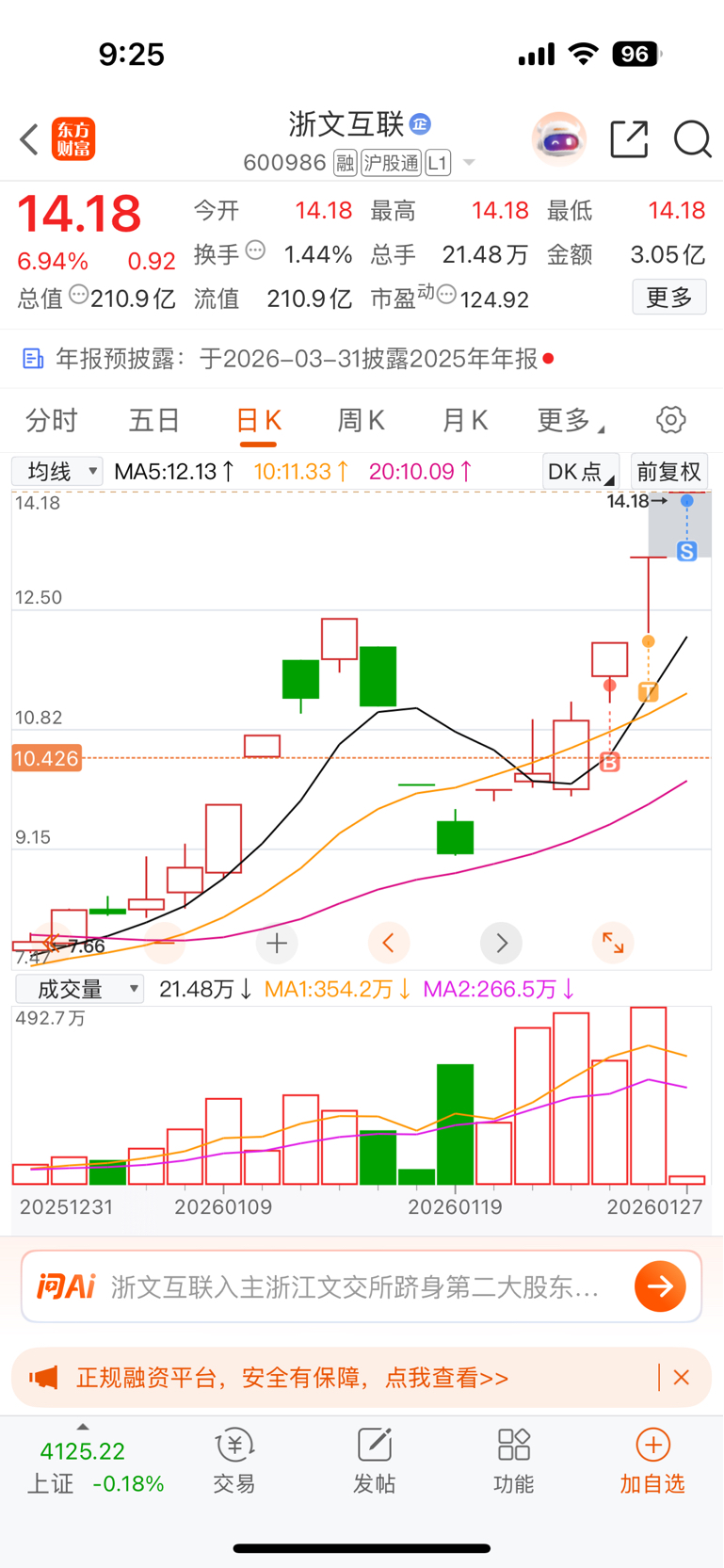$浙文互联(SH600986)$ 美滋滋,安全撤退