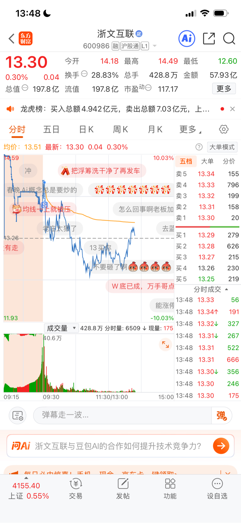 $浙文互联(SH600986)$ 卖飞了,没想到这么强