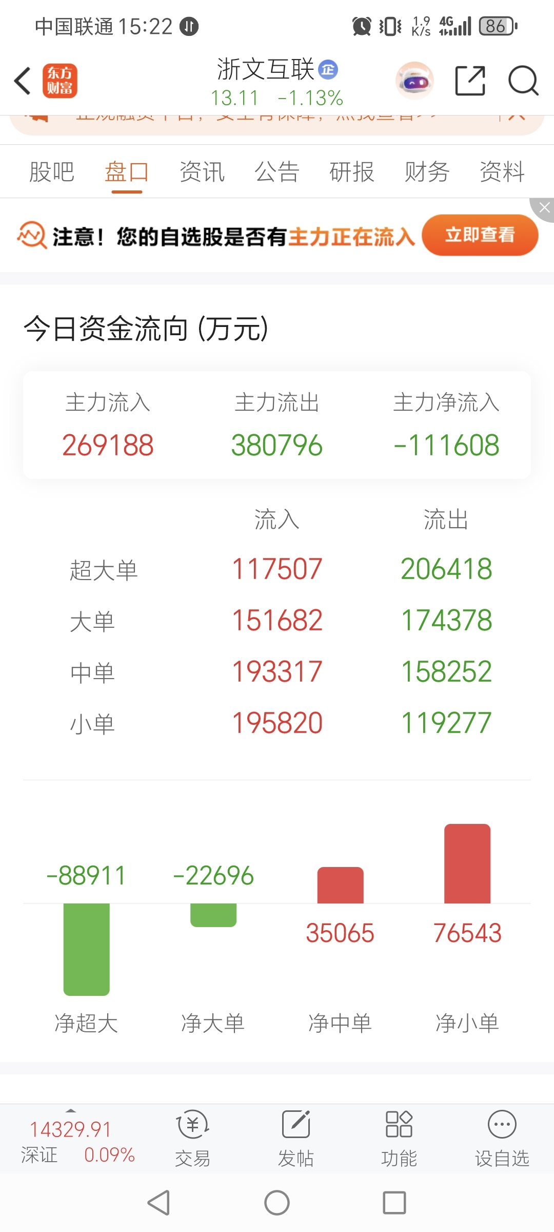 $浙文互联(SH600986)$ 流出11亿,流弊。