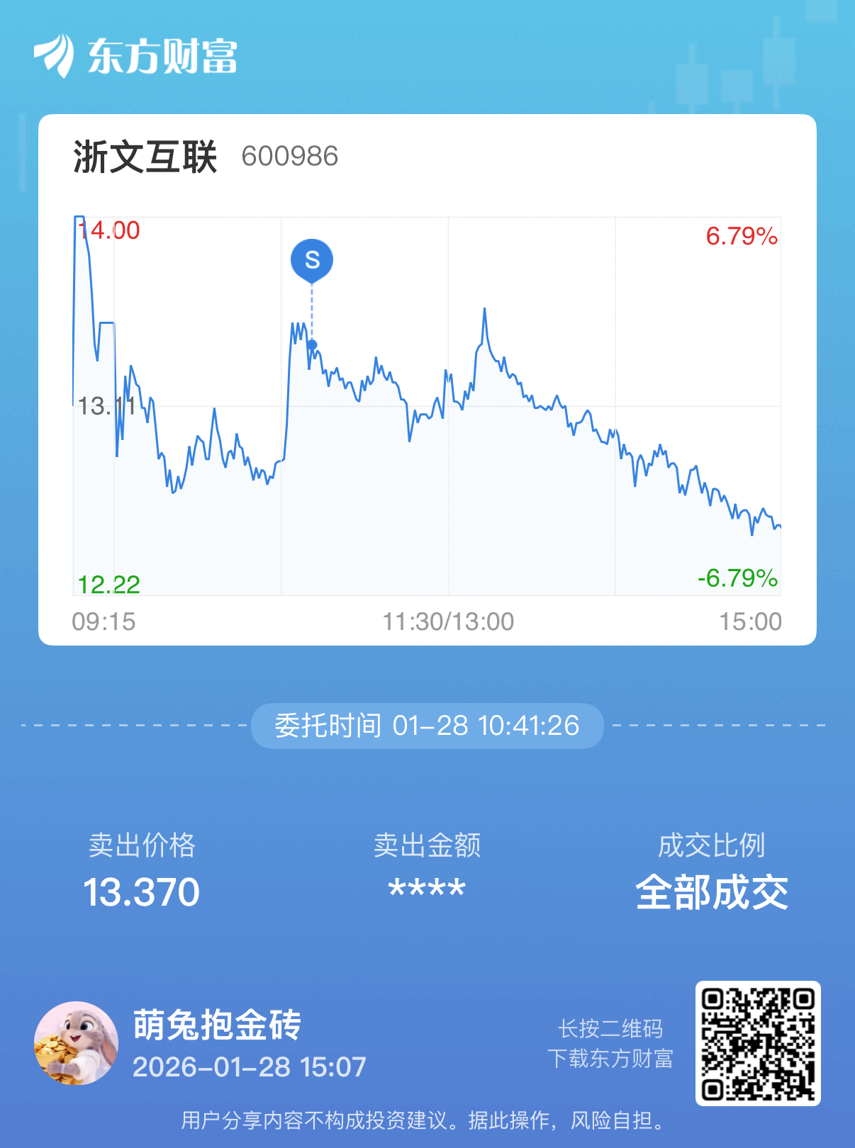 温馨提示: 1.根据《证券法》规定,禁止编造、传播虚假信息或者误导性信息,扰乱证券市场;2.用户在本社区发表的所有资料、言论等仅代表个人观点,与本网站立场无关,不对您构成任何投资建议。用户应基于自己的独立判断,自行决定证券投资并承担相应风险。《东方财富社区管理规定》