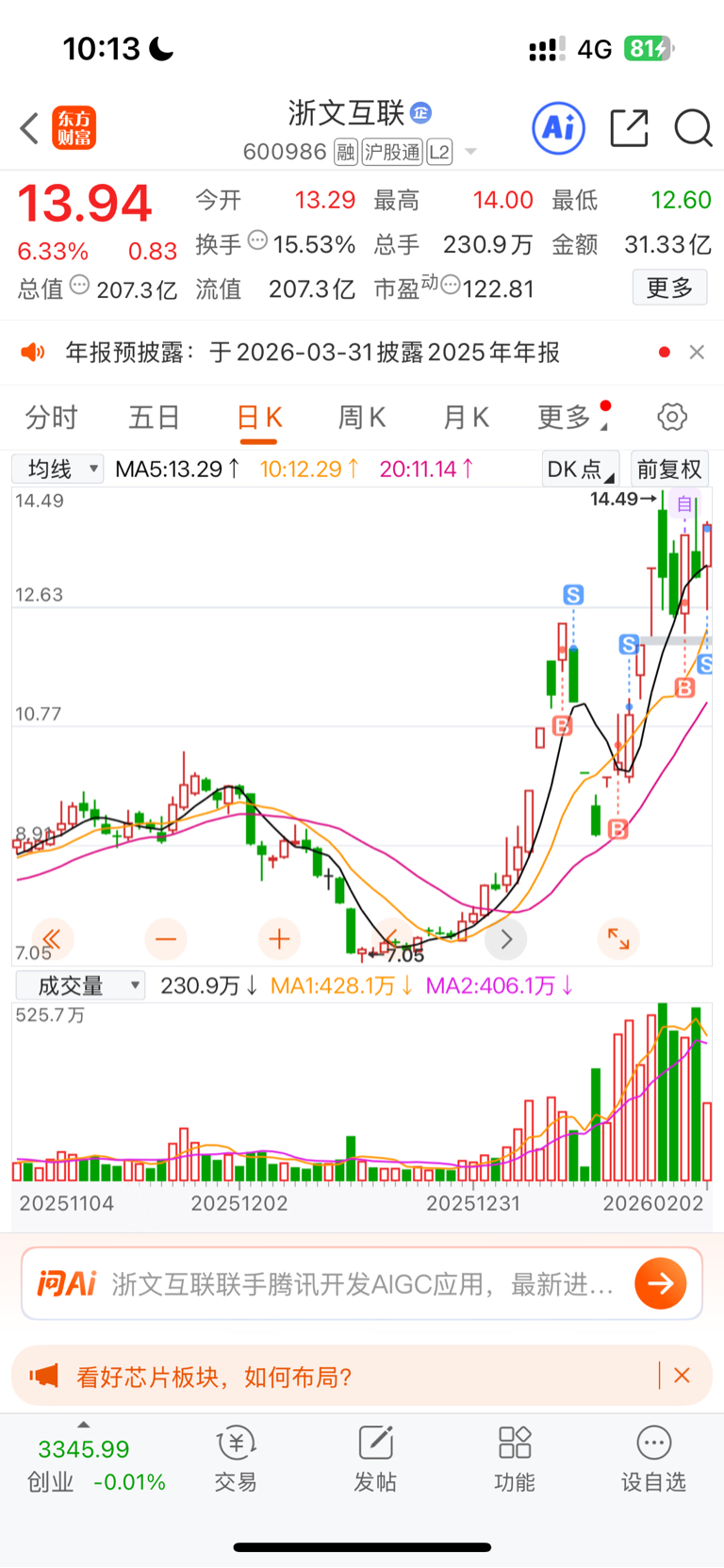 $浙文互联(SH600986)$ 没有卖在最高点,但是符合卖的预期了,9.50应该冲涨停,没有冲,10点也没有冲,今天属于套利,不知道自己预测对不对
