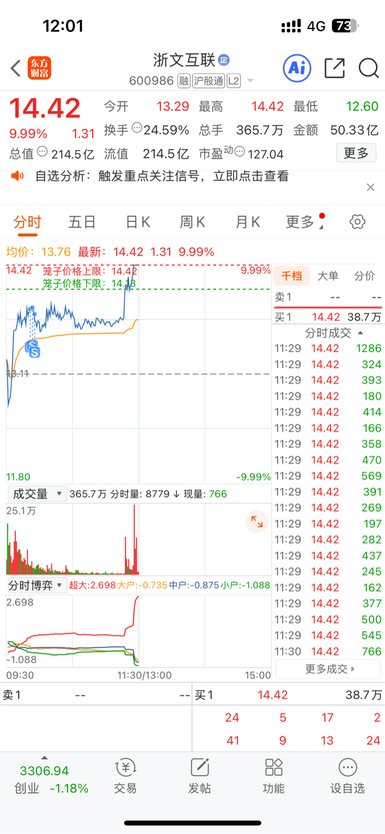 $浙文互联(SH600986)$ 上周四全仓买的,真是只能挣认知的钱,卖出的时候很满意就可以了,不可能所以利润都是自己的,今天环境不好,换了6个,一个追涨停