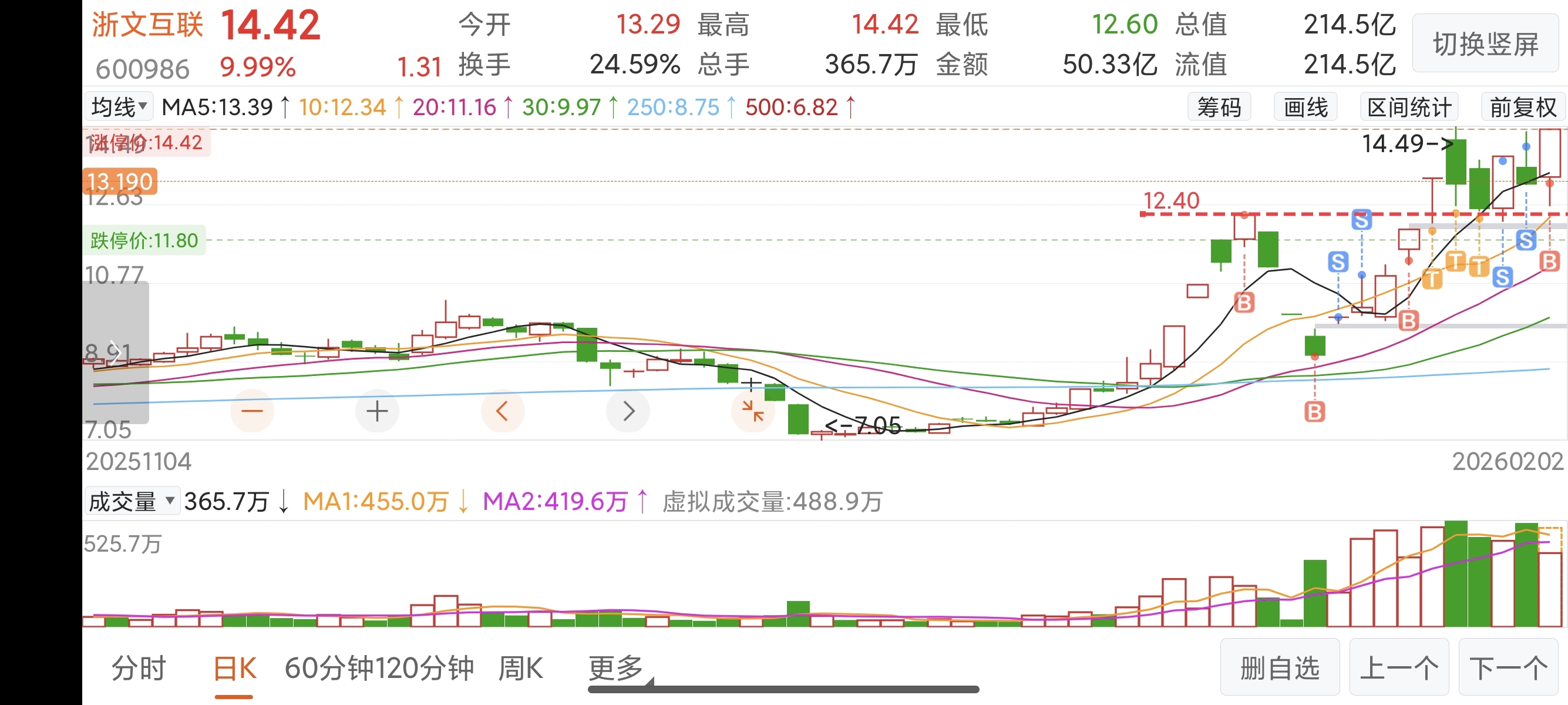 $浙文互联(SH600986)$ 缩量反包前方放量分歧大阴线,换手不太够,感觉后面还要回踩,不过上周量堆的确实很足,高度还是挺期待的