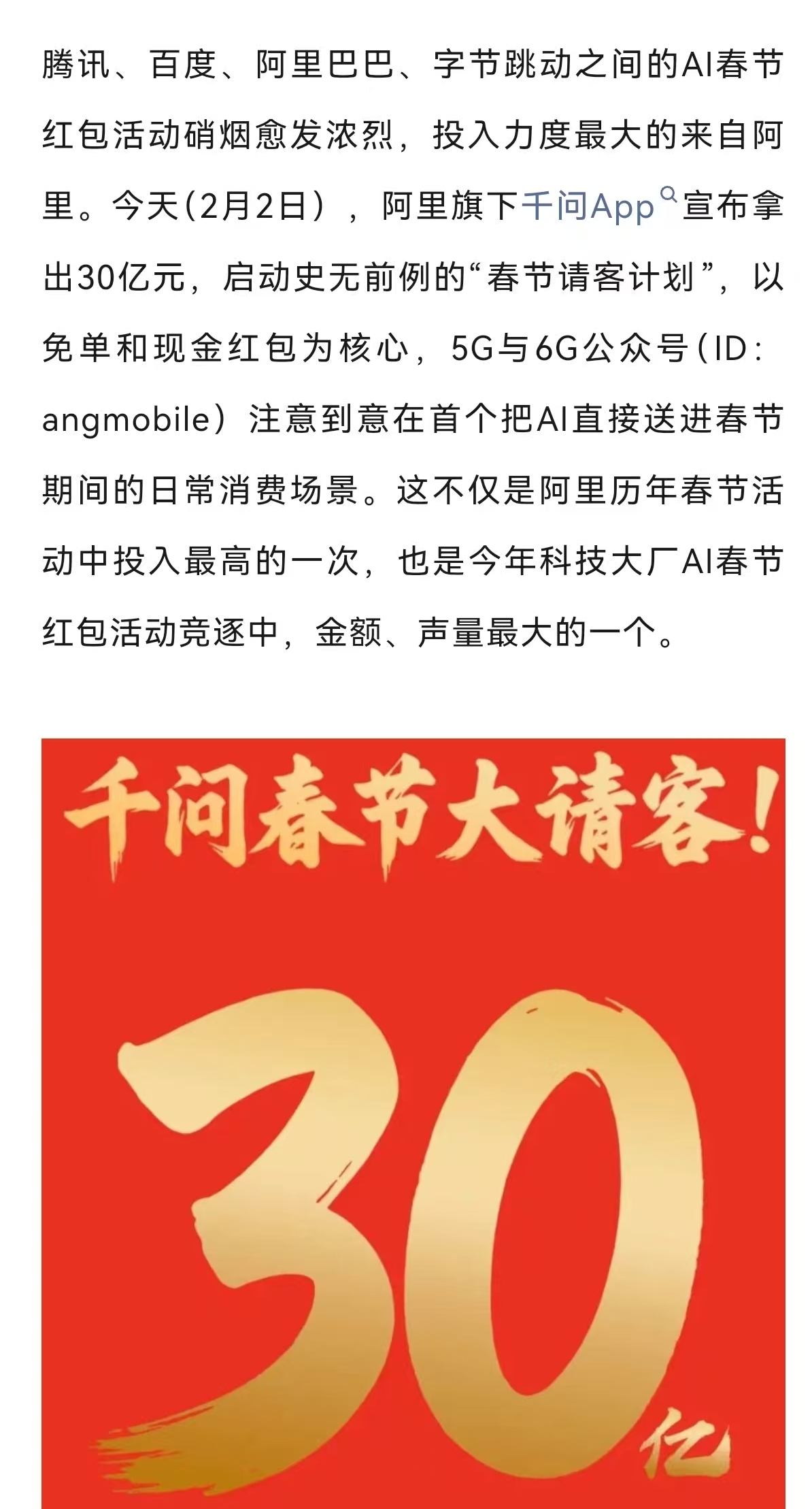 千问也来了,30个亿,豆包还没公布,估计也不会少。接下来得多热闹。上述三家,浙文