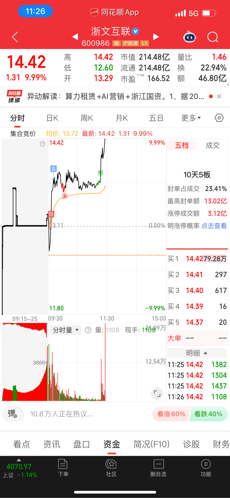 $浙文互联(SH600986)$ 气死了,挂涨停价卖,怎么给我卖了