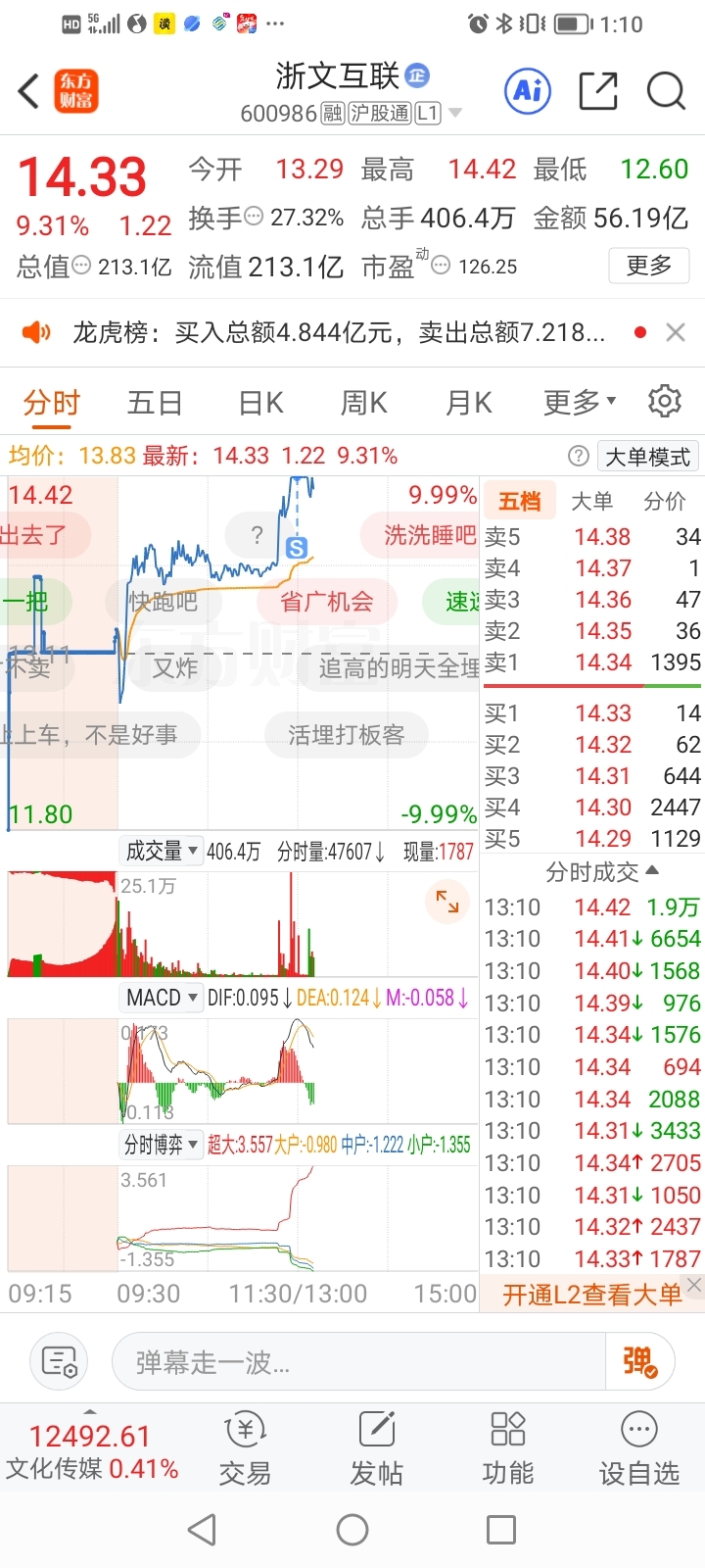 $浙文互联(SH600986)$ 涨停跑了