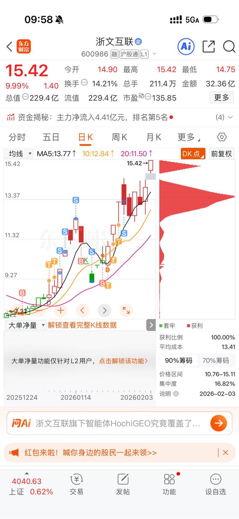 小看你了小文文$浙文互联(SH600986)$