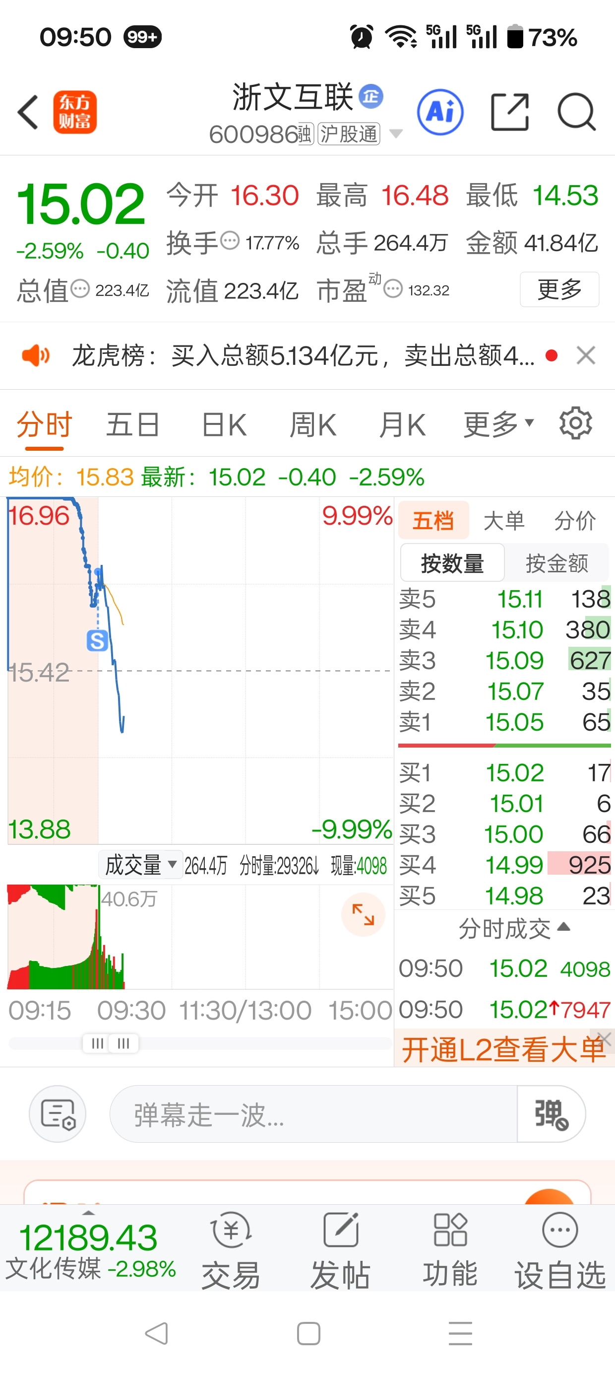 $浙文互联(SH600986)$ 还没有卖出?