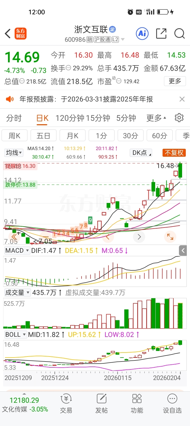 $浙文互联(SH600986)$ 有本事放倍量,否则尾盘抄你底