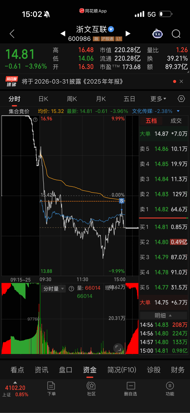 $浙文互联(SH600986)$ 格局了一天,该强不强,这几天要调整,周五去再去蓝色光标等过年