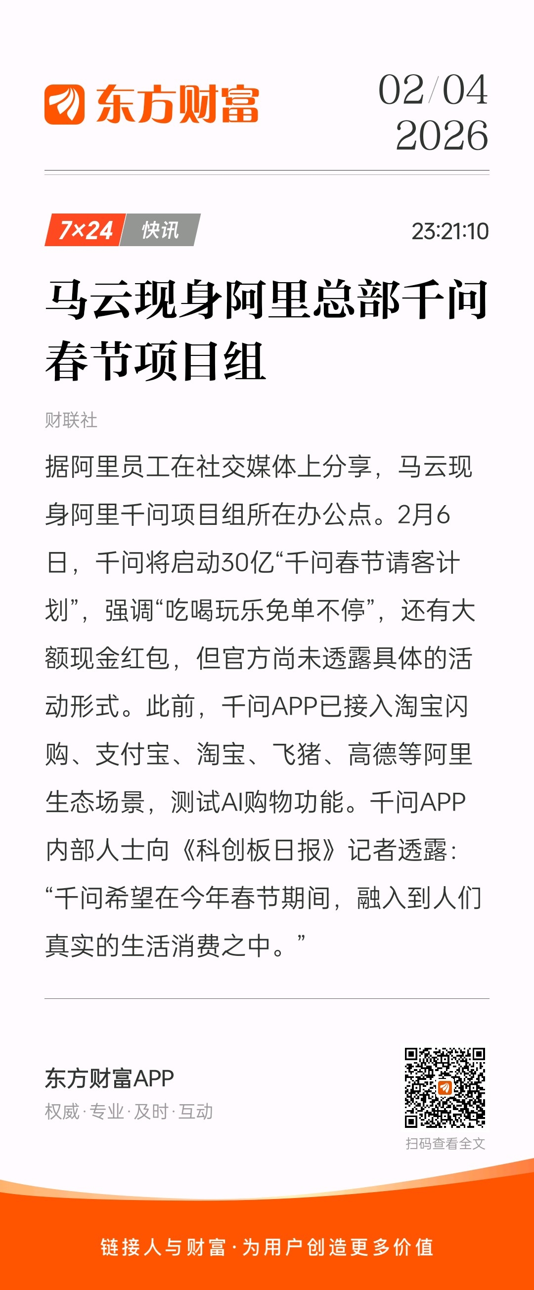 $浙文互联(SH600986)$ 深夜重磅利好,重大利好来了,马云现身阿里总部布局启动千问30亿春节红包,明天反包了,一个赞一个板