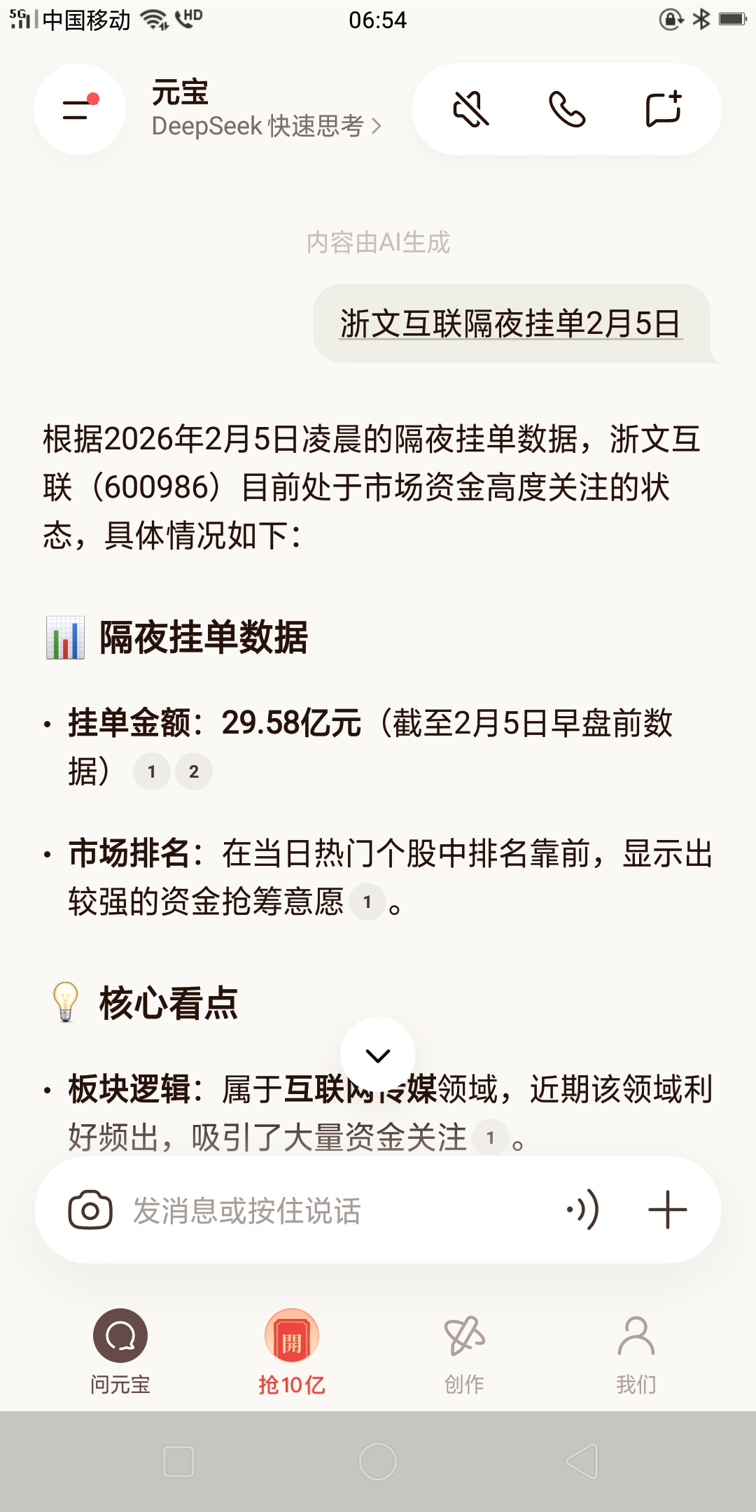 $浙文互联(SH600986)$ 元宝的功能还是有点用的