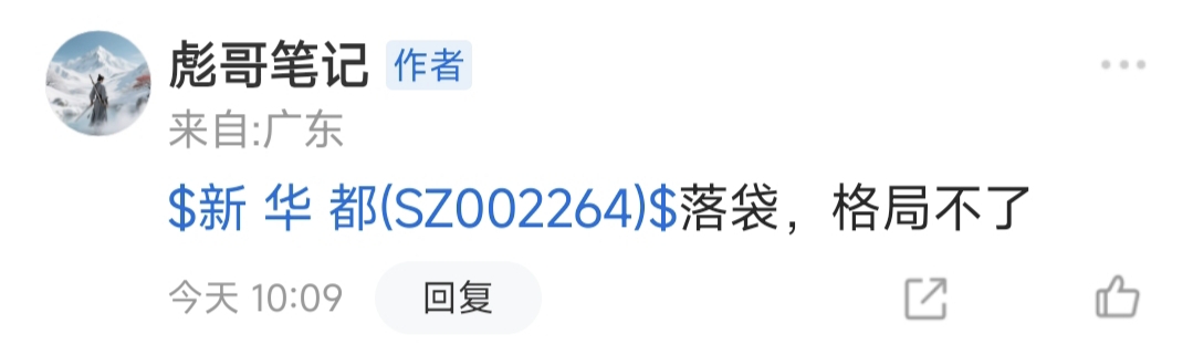 下车:$新 华 都(SZ002264)$ 虽然卖飞一点,但是这个行情稳住利润就好!