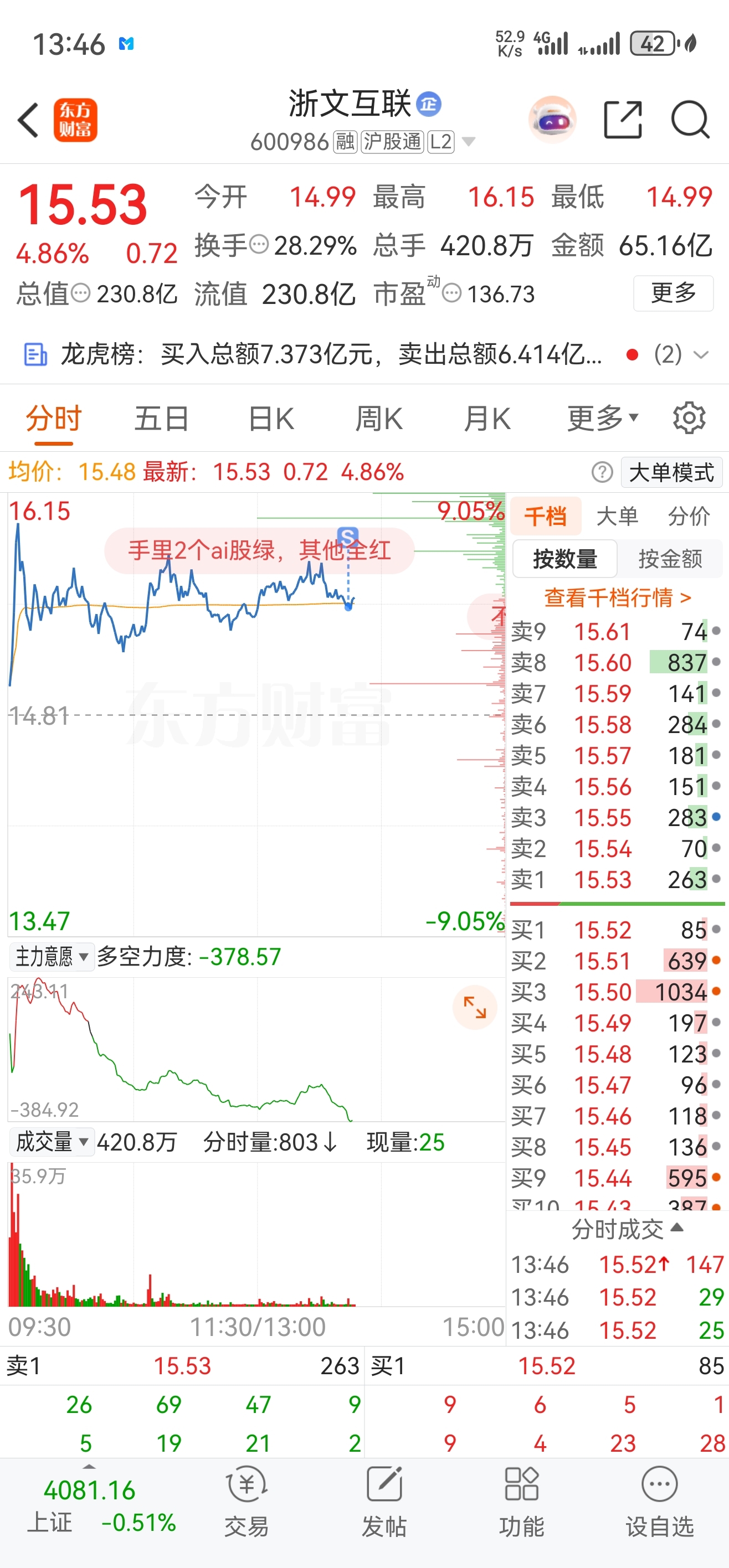 $浙文互联(SH600986)$ 我不卖兄弟们怎么能能赚钱?我卖了才飞