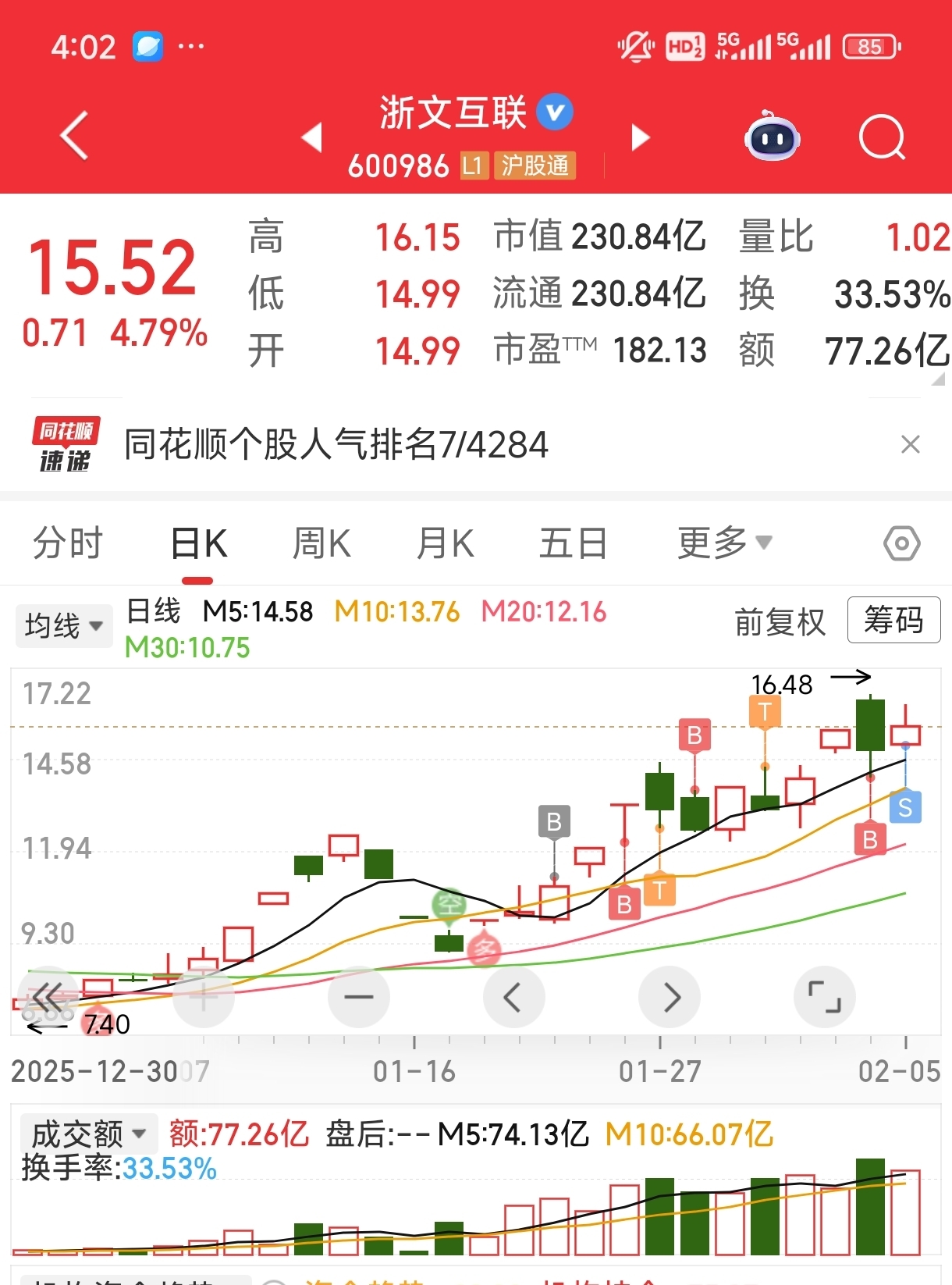 $浙文互联(SH600986)$ 又告别一只