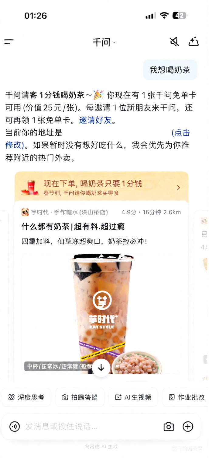 AI流量入口打通外卖了,以后Ai可以打通万物应用,这样的AI营销,AI应用还不是