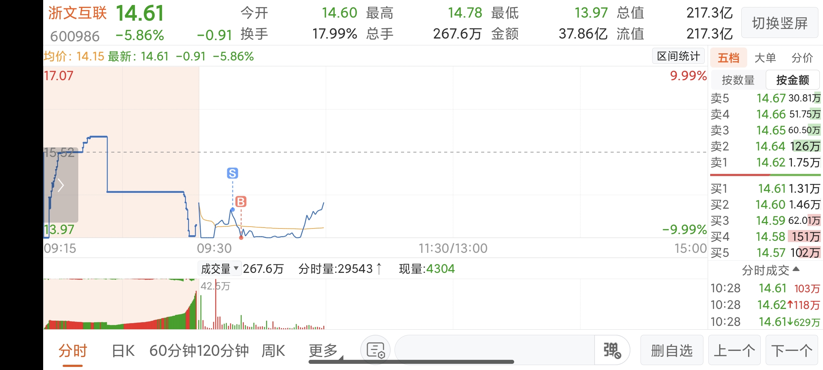 $浙文互联(SH600986)$ macd走m头了,等缩量跌到支撑位在看看吧